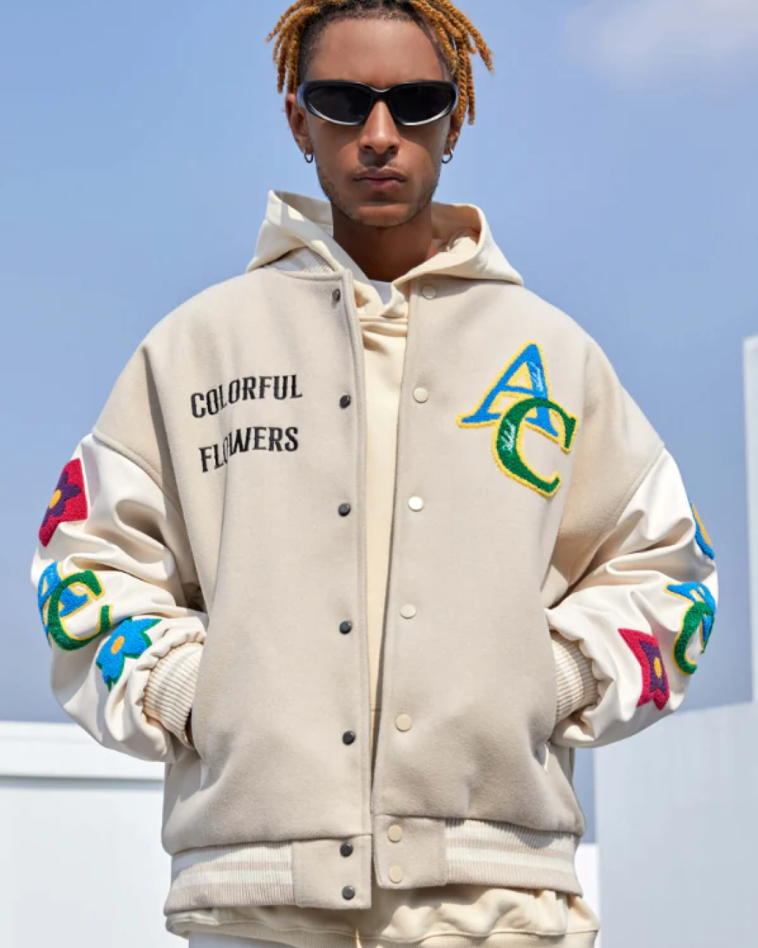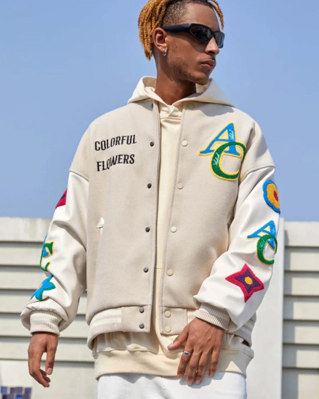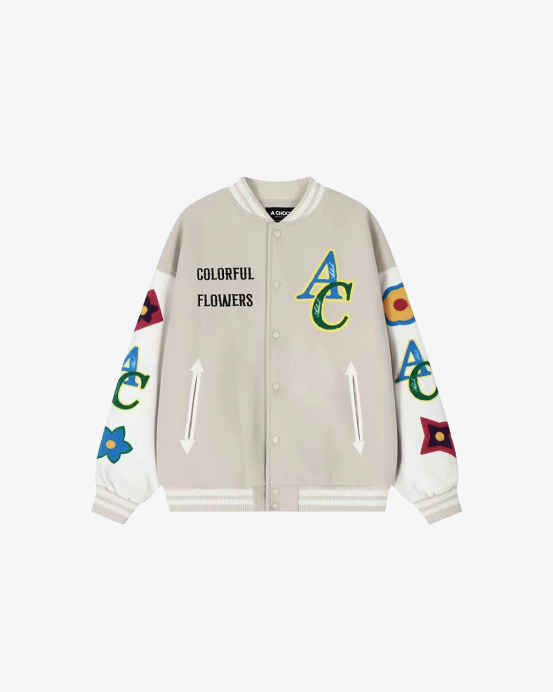 The Achoke Floral Embroidered Colorful Baseball Jacket is a vibrant fusion of classic sportswear and contemporary design. This eye-catching jacket is crafted with a colorful base, adorned with intricate floral embroidery that adds a touch of elegance and uniqueness to the piece.