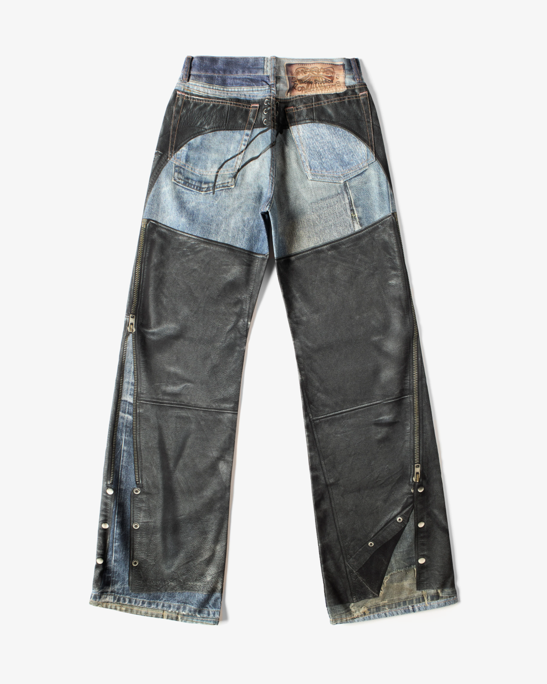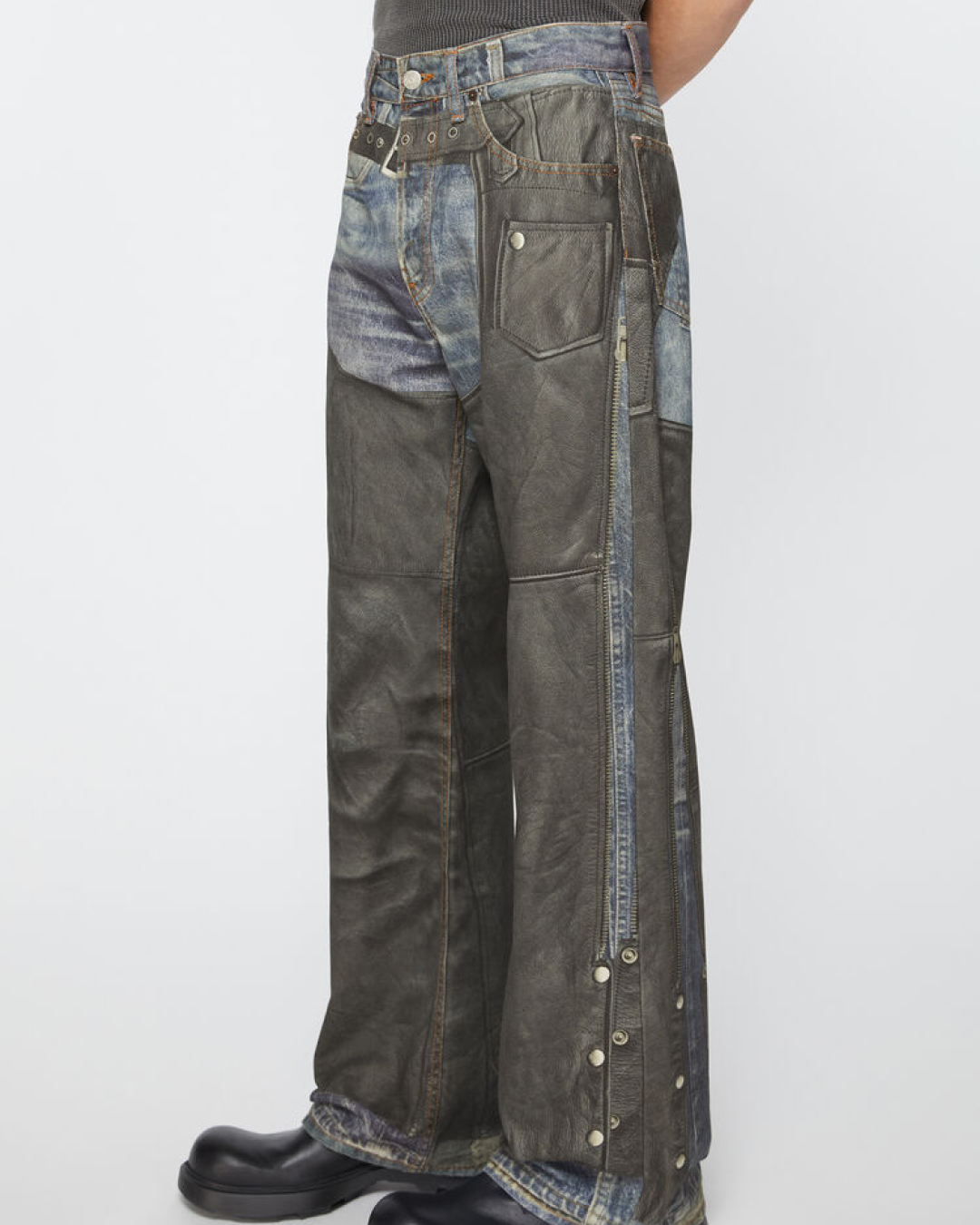 The Acne Studios Leather Chaps Printed Jeans offer a bold and unique twist on classic denim. These statement jeans feature a distinctive print that mimics the look of leather chaps layered over traditional jeans, creating an eye-catching, layered effect. Crafted from premium cotton denim with a touch of stretch, they provide comfort and a flattering fit.