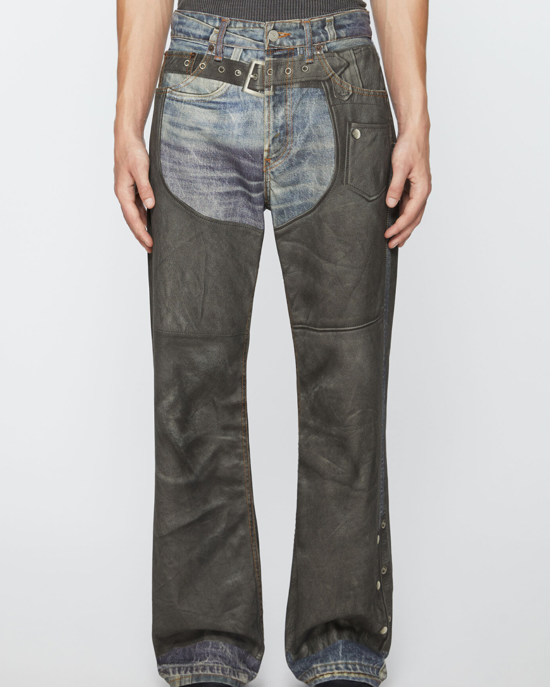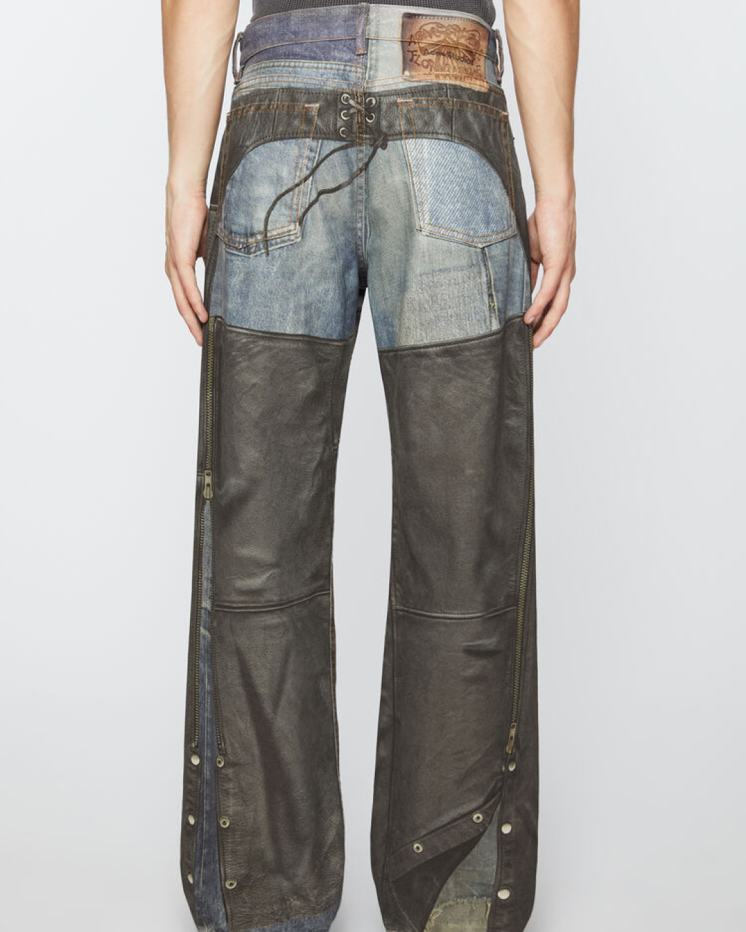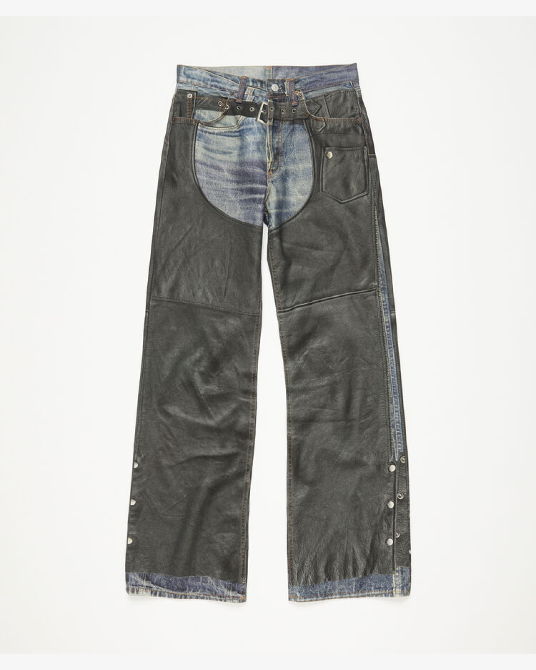 The high-quality print detailing adds an avant-garde edge, making these jeans perfect for those who love to push the boundaries of fashion. With a classic five-pocket design and a button fly closure, these jeans combine functionality with an innovative aesthetic. Whether styled with a simple tee or a statement jacket, the Acne Studios Leather Chaps Printed Jeans are sure to turn heads.