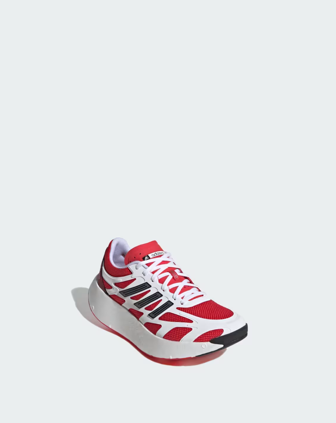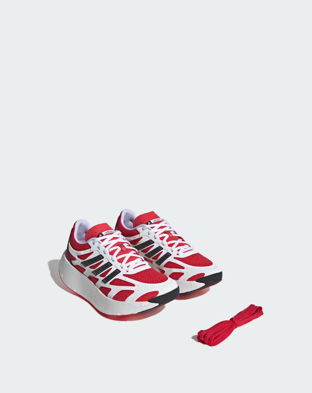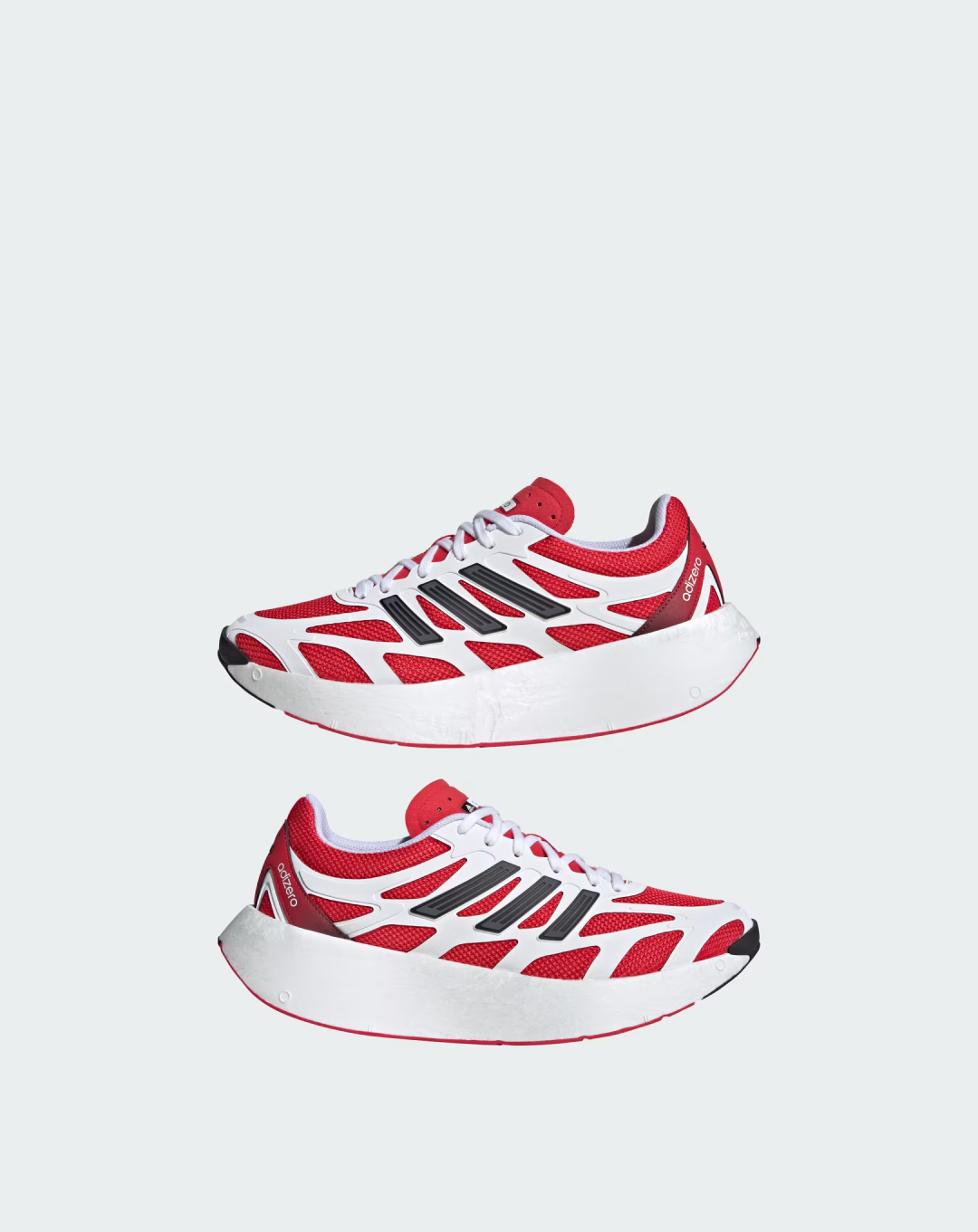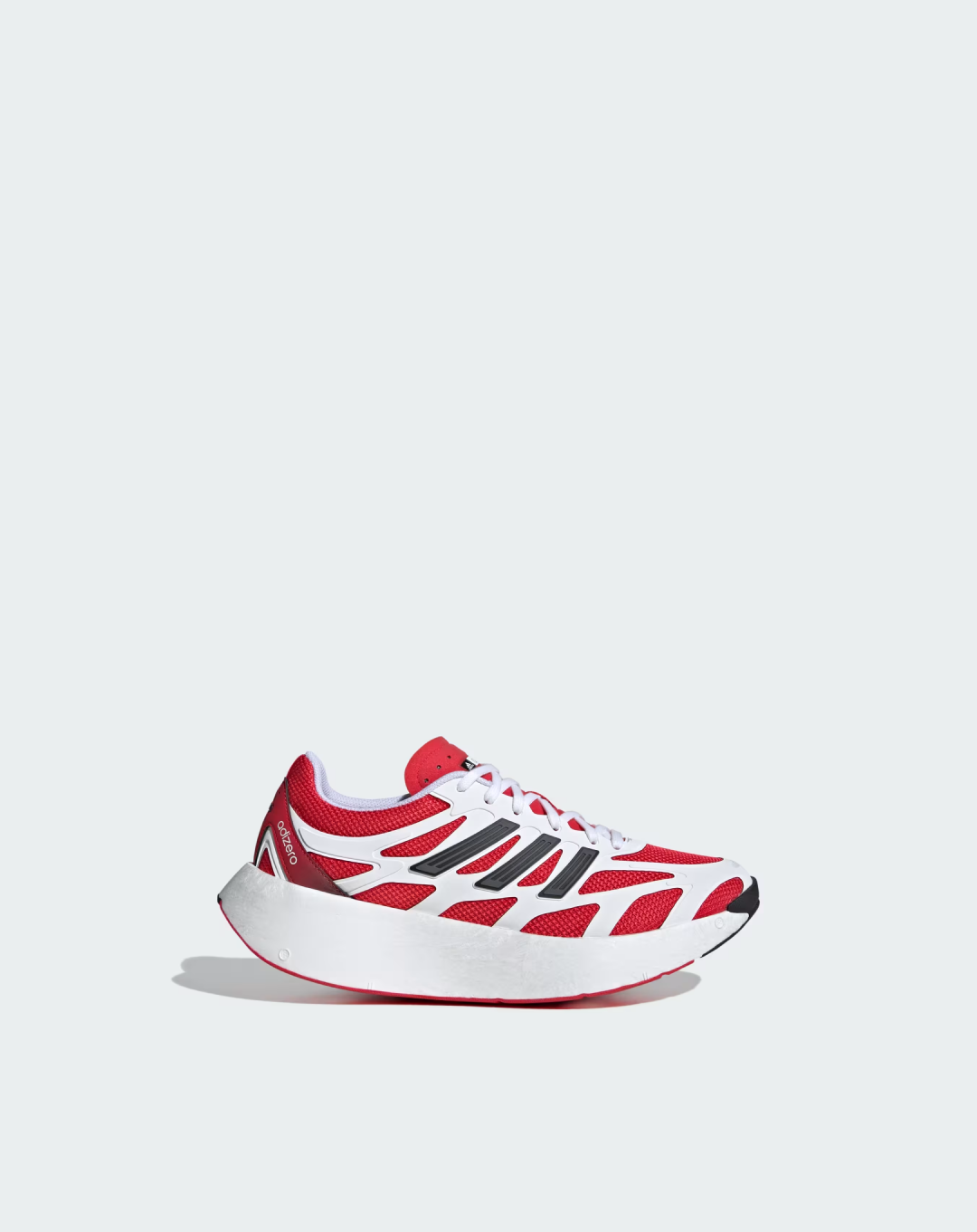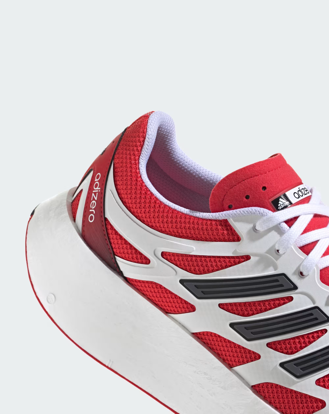 The upper features breathable mesh in a deep Uruku red, accented by crisp white Three-Stripes branding and subtle gold detailing that nods to Adidas’ heritage. Engineered with the Adizero’s signature lightweight construction, these sneakers offer unparalleled comfort with every step. The responsive Lightstrike midsole provides superior cushioning, while the durable rubber outsole ensures excellent grip on various surfaces.