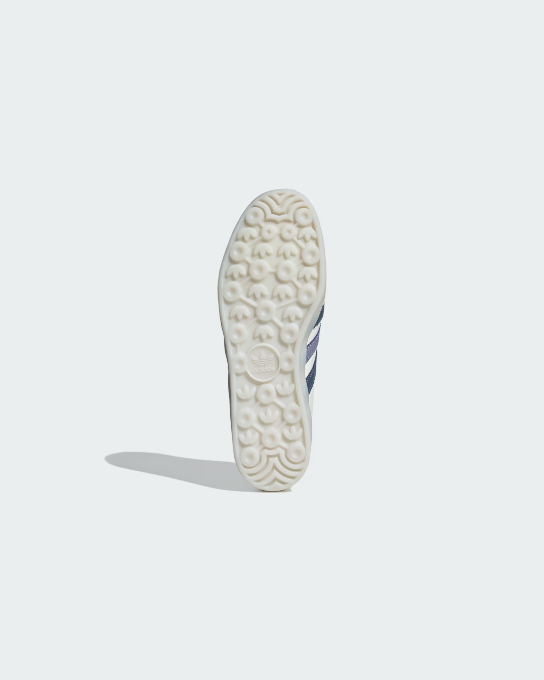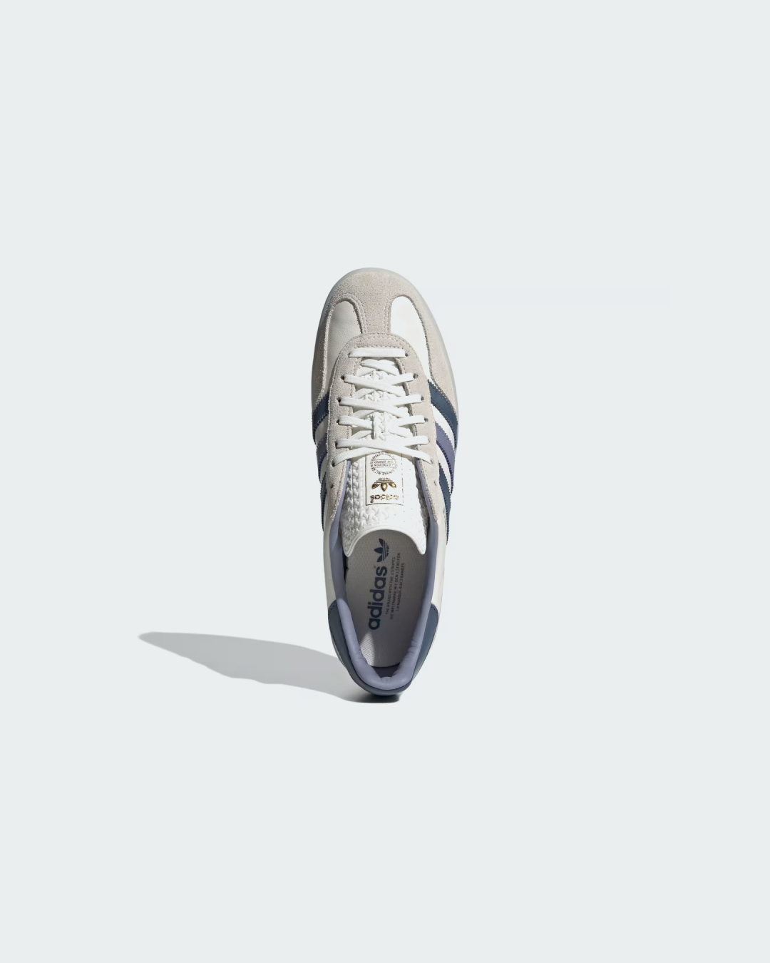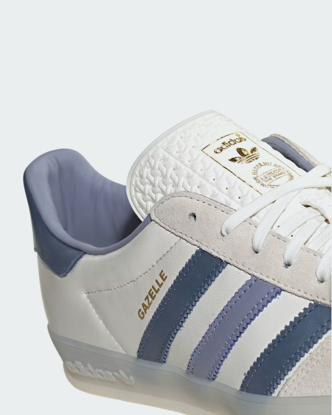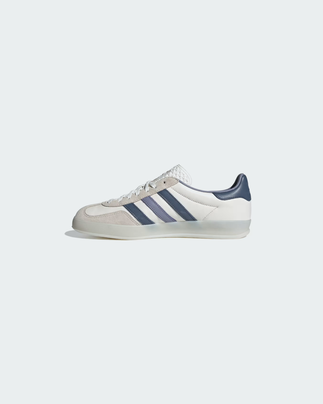 The Adidas Gazelle Indoor “Core White/Preloved Ink Melange” is a refined take on the classic Gazelle silhouette, blending heritage design with contemporary flair. Originally introduced as an indoor training shoe in the 1970s, this iteration maintains its iconic low-profile while incorporating modern materials and colorways.