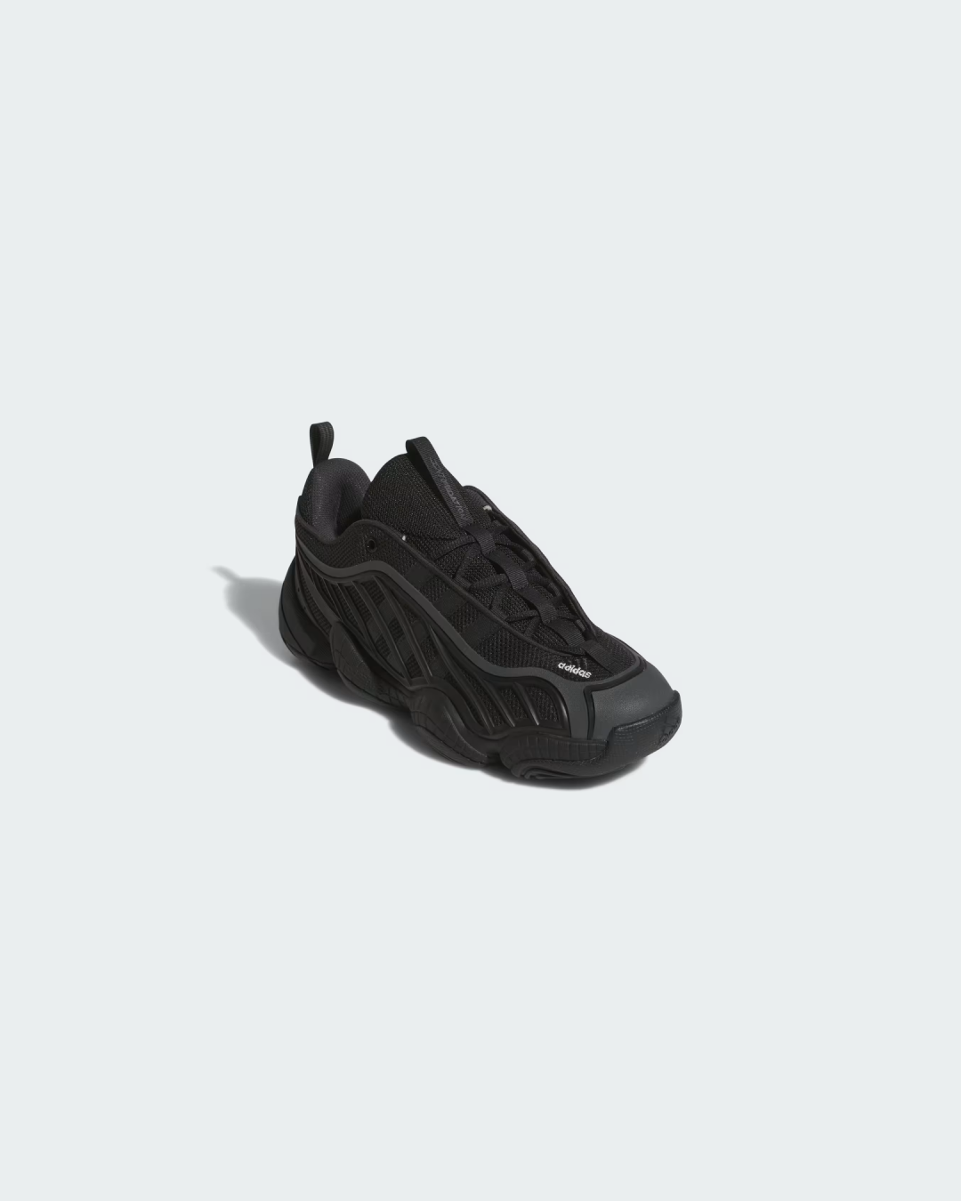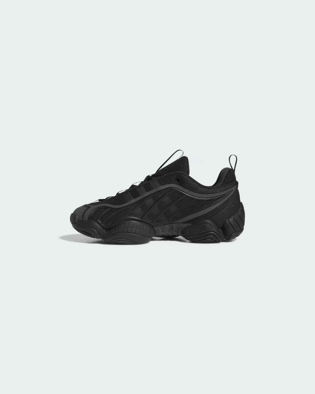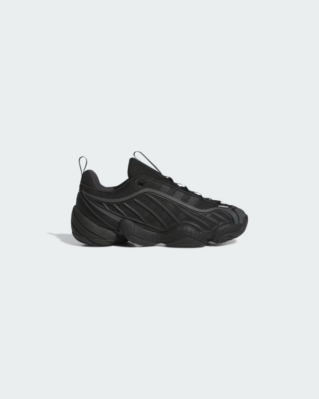 The Adidas Intimidation 'Black' Sneakers bring a bold and aggressive edge to modern streetwear. Designed with a sleek, futuristic silhouette, these sneakers feature a durable mixed-material upper that enhances both style and functionality. The sculpted midsole provides exceptional cushioning and support, ensuring all-day comfort, while the textured outsole offers superior grip for any terrain. The tonal black colorway adds a stealthy, versatile touch, making these sneakers easy to pair with any outfit.