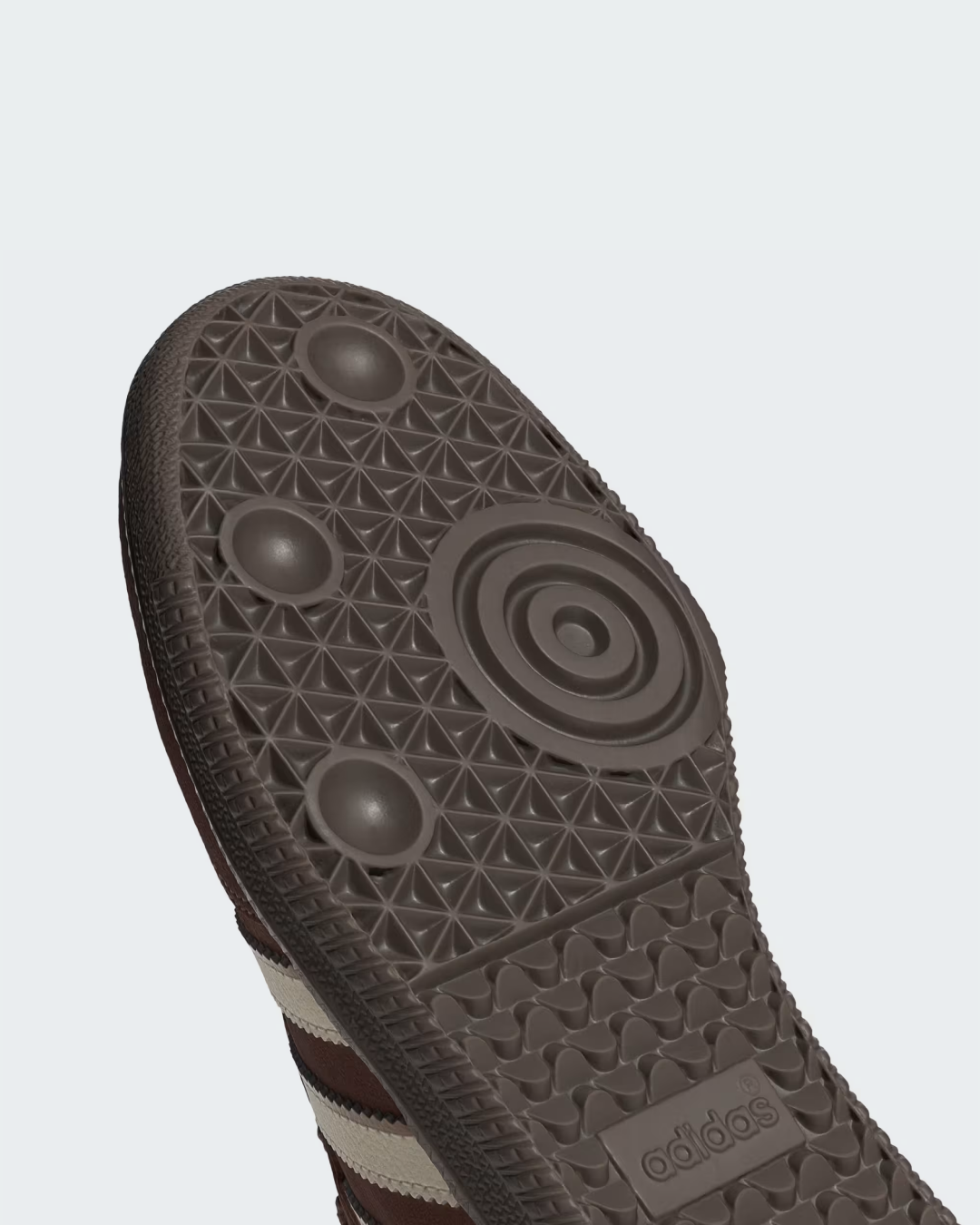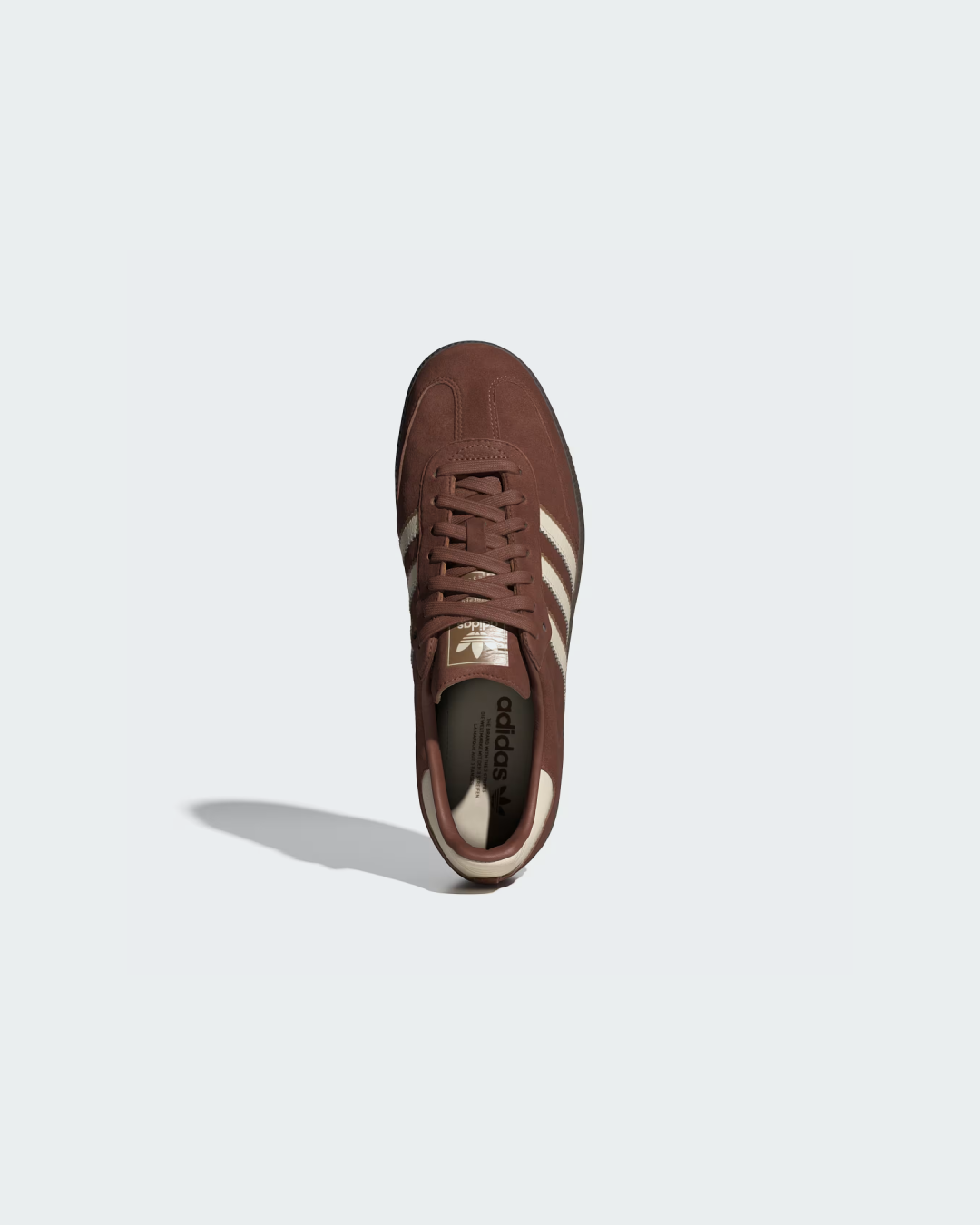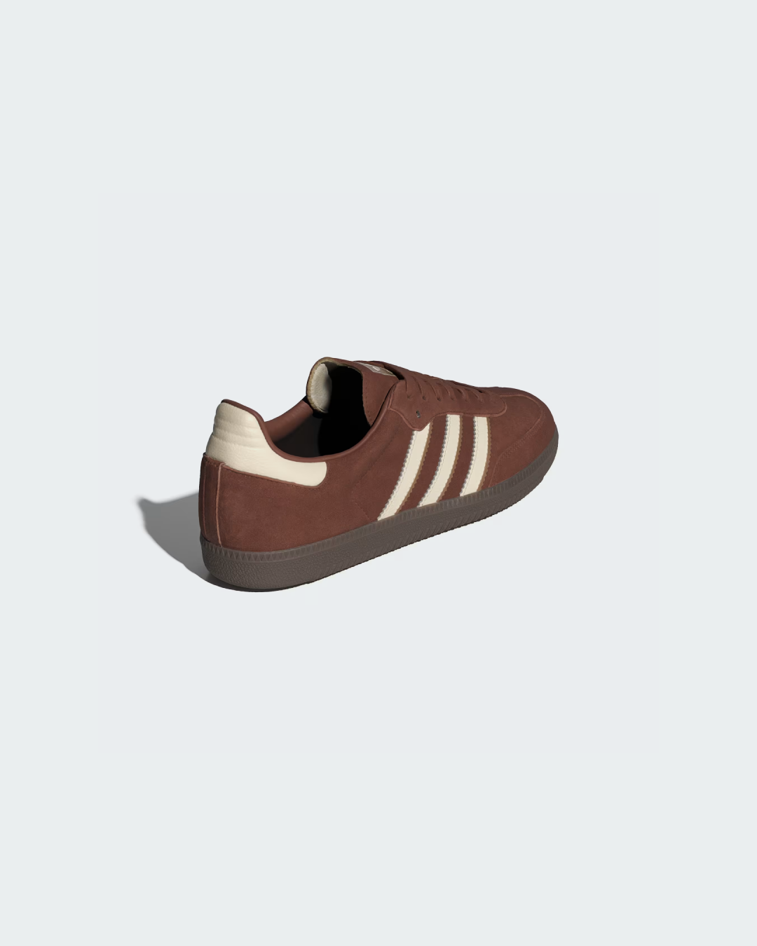 Crafted with a rich brown suede and leather upper, the OG Samba retains its signature T-toe overlay and serrated 3-Stripes branding, while the contrast gum rubber sole delivers that unmistakable retro finish. The low-profile design hugs the foot comfortably, making it ideal for all-day wear. Subtle Adidas detailing on the tongue and sidewall round out the look, paying homage to the brand’s legacy while keeping things fresh and on-trend.