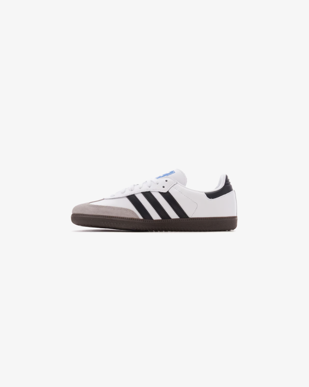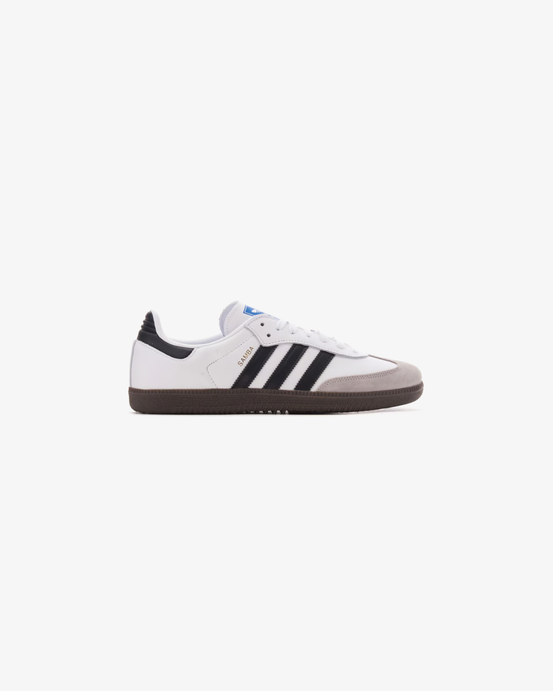 The design of these white adidas Samba maintains its most classic style thanks to its soft leather upper and suede overlays, its three serrated stripes, and the T-shaped toe cap. The sole, of course, remains in its iconic caramel color.