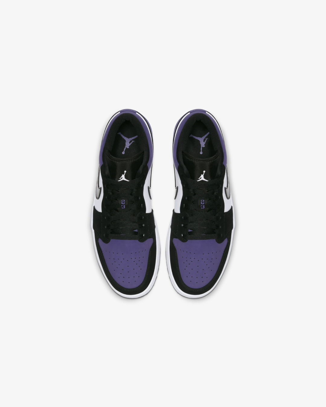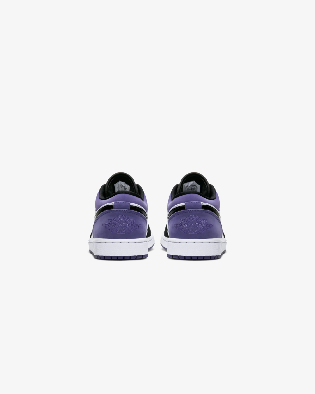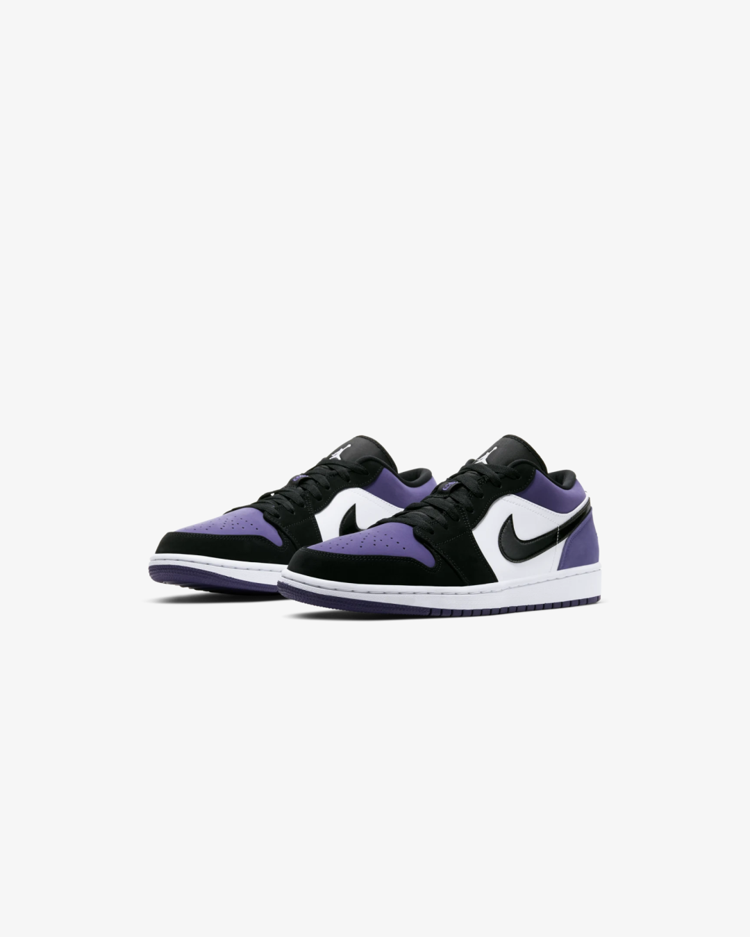 The Air Jordan 1 Low "Court Purple" delivers a bold yet timeless look, combining classic basketball heritage with modern streetwear appeal. Featuring a smooth white leather base, this sneaker is accented with vibrant court purple overlays and a sleek black Swoosh, creating a striking contrast. The padded collar and breathable perforations on the toe box ensure all-day comfort, while the durable rubber outsole with pivot point traction makes it perfect for everyday wear. Signature details like the embroidered Wings logo on the heel and Jumpman branding on the tongue add the finishing touches to this must-have silhouette.