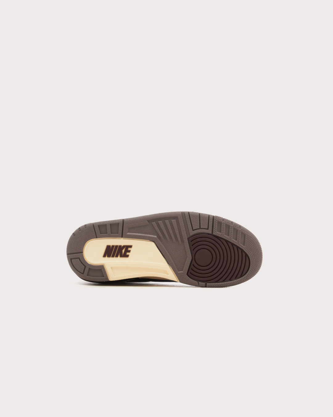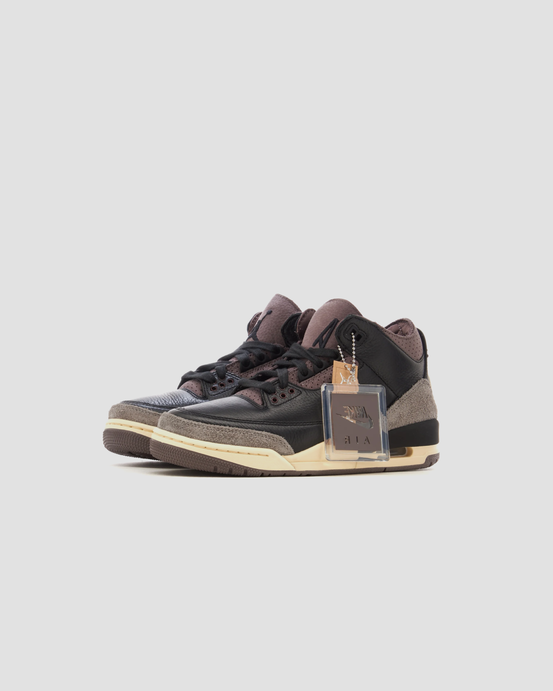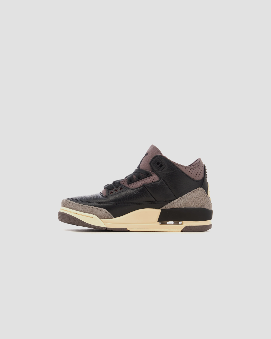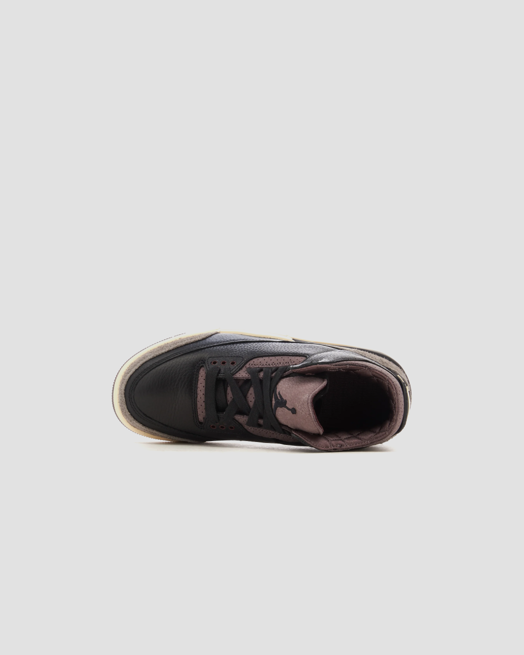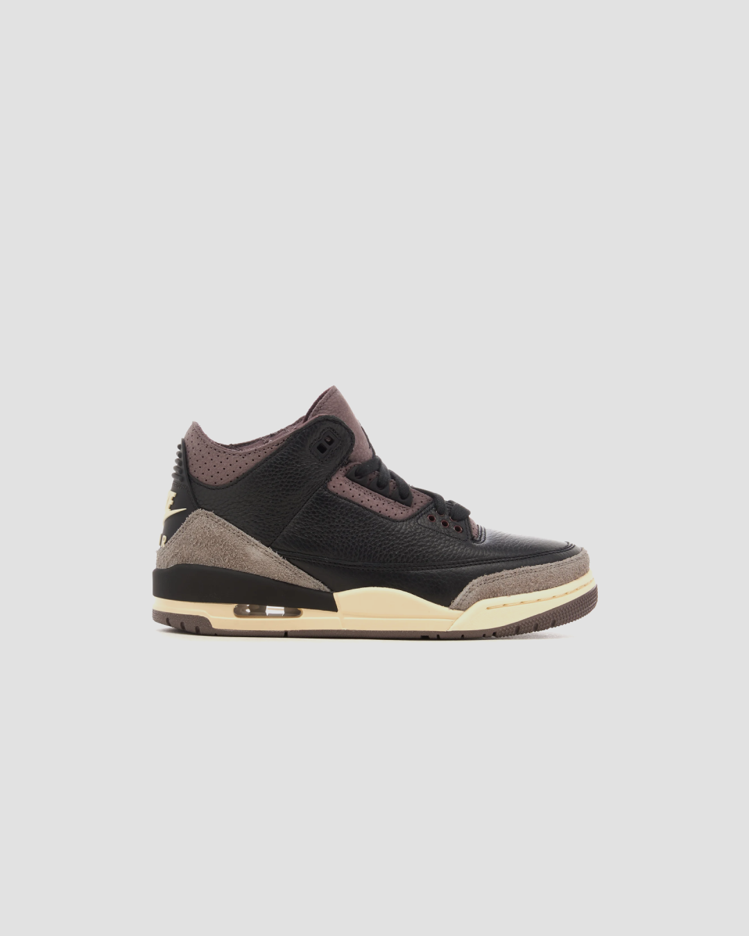 The Air Jordan 3 x A Ma Maniére is a refined take on the classic AJ3 silhouette, blending luxury craftsmanship with timeless basketball heritage. This collaboration between Jordan Brand and A Ma Maniére introduces a premium tumbled leather upper in a subtle off-white hue, complemented by suede detailing on the toe box, heel, and eyestays for a sophisticated, textured look. Signature touches include quilted satin lining, adding a sense of elegance, and subtle branding with the "A" logo on the tongue. The vintage-inspired sail midsole houses a visible Air unit for responsive cushioning, while the rubber outsole ensures reliable traction.