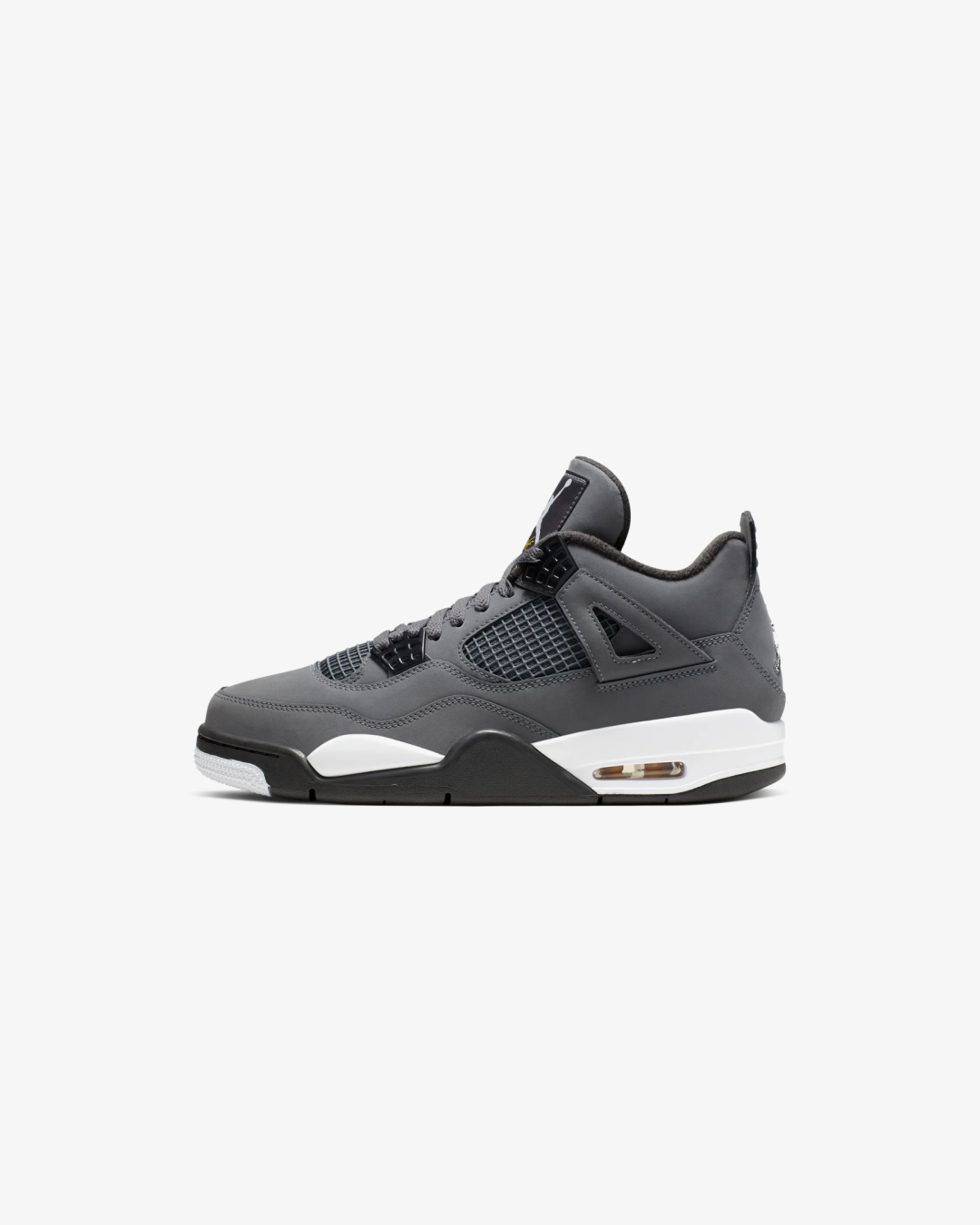 The Air Jordan 4 "Cool Grey" is a timeless classic, making its mark with a premium nubuck upper in a sleek cool grey shade. Originally released in 2004 and reintroduced in 2019, this fan-favorite silhouette maintains its iconic design elements, including the chrome Jumpman logo on the heel, black accents on the outsole and wings, and white midsole detailing for a balanced contrast. A visible Air unit in the heel provides superior cushioning, ensuring both style and comfort in every step.