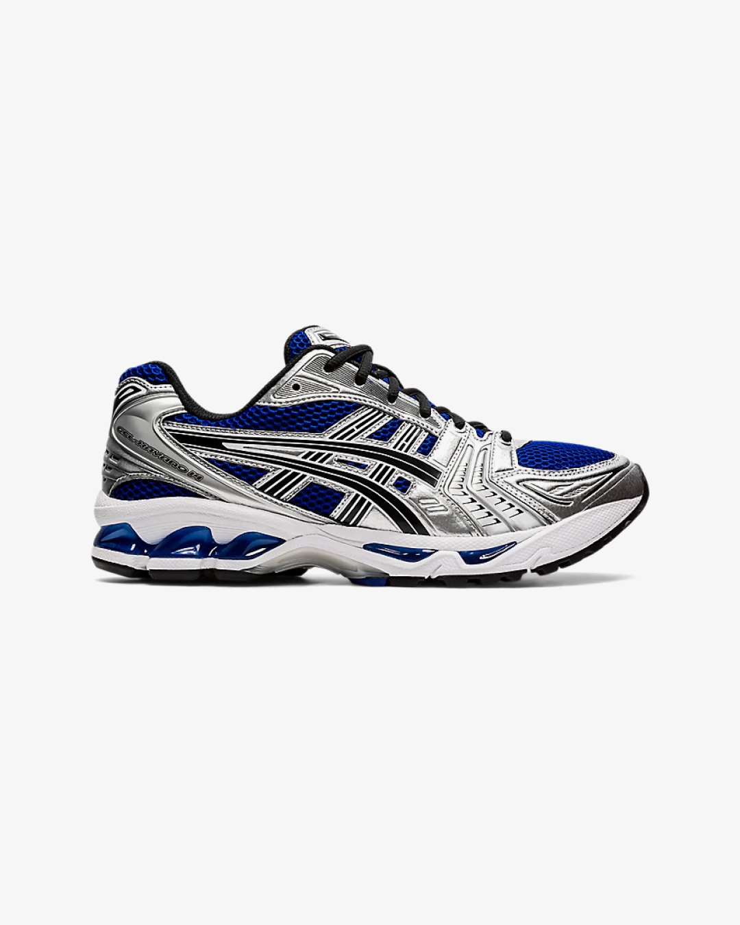 The ASICS Gel-Kayano 14 “Monaco Blue” is a striking revival of the brand’s late-2000s performance runner, blending retro aesthetics with modern comfort. This colorway features a deep Monaco Blue mesh upper, accented by metallic silver synthetic overlays and black detailing on the iconic side stripes. The design is completed with a white EVA foam midsole housing blue-tinged GEL inserts in the forefoot and heel, ensuring lightweight cushioning and support. An exposed TRUSSTIC support system underfoot adds stability, making this sneaker both stylish and functional