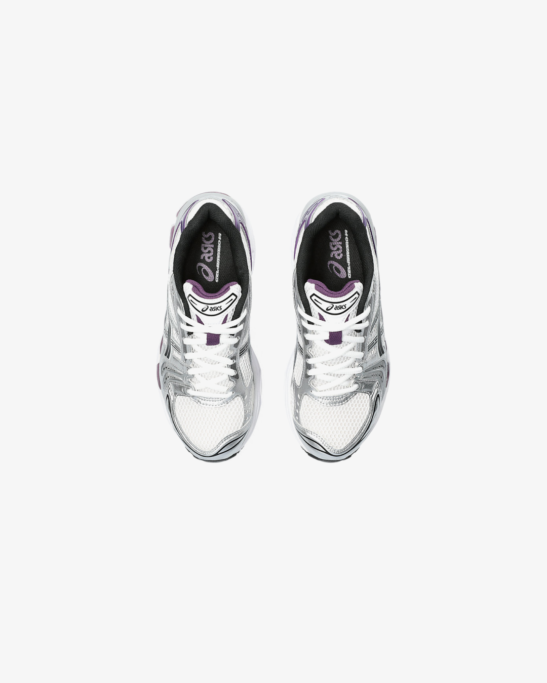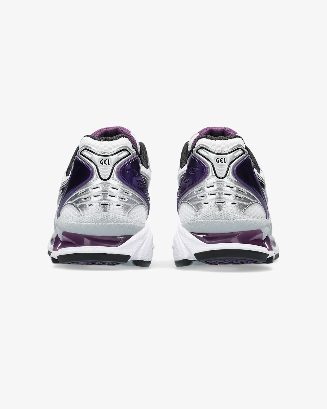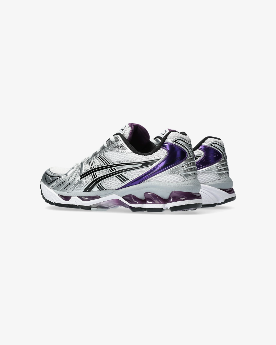 The ASICS GEL-Kayano 14 “White/Dark Grape” is a women's-exclusive release that reimagines the classic 2000s runner with a contemporary twist. This iteration features a clean white mesh base, complemented by metallic silver overlays and subtle black accents. The standout "Dark Grape" hue adds a vibrant touch, appearing on the heel, tongue lining, lace harness, and the exposed GEL cushioning in the midsole. These elements create a layered, futuristic aesthetic that pays homage to the sneaker's heritage.