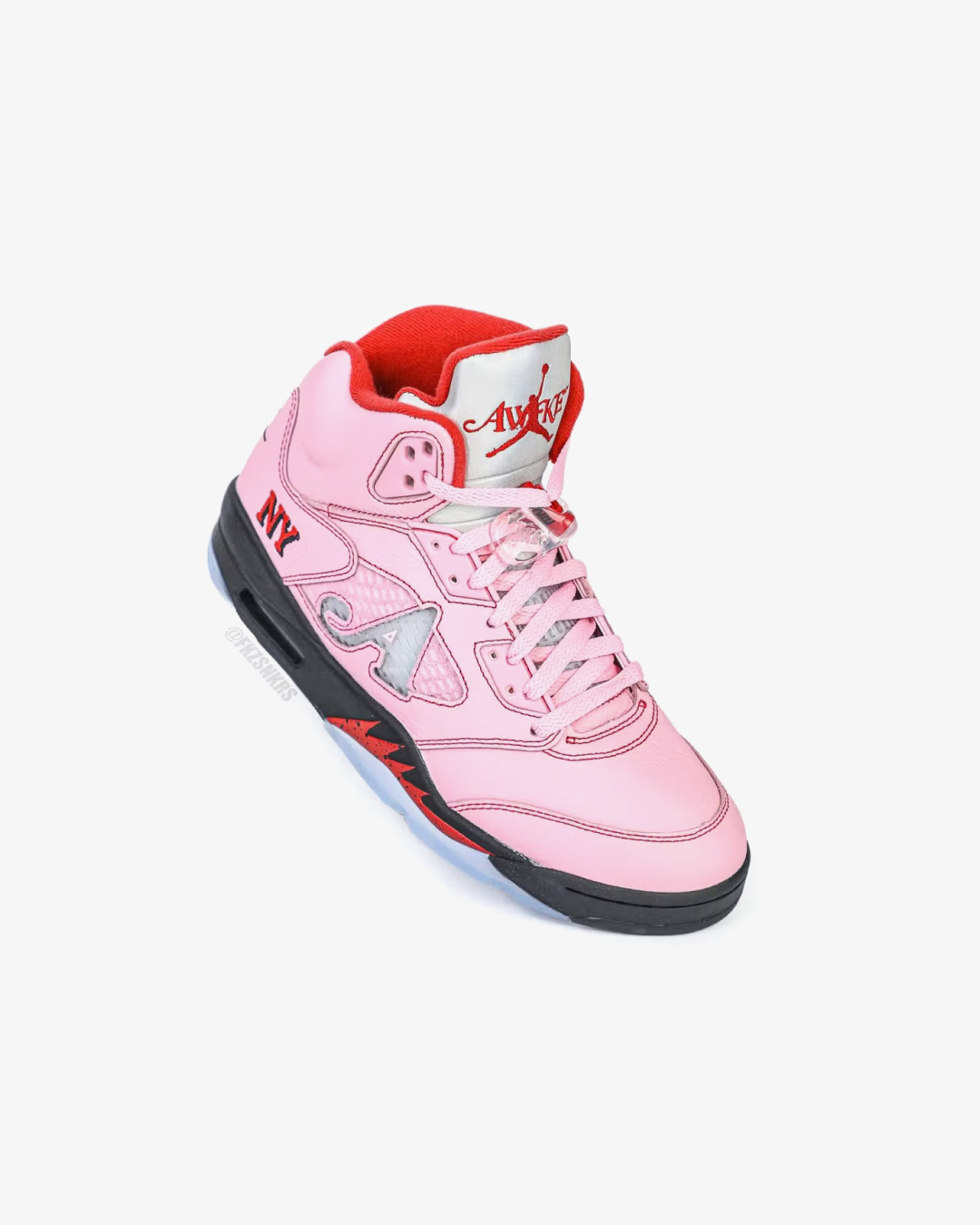 Let the Racer Blue details pop by styling with neutral or all-black pieces — think black cargos, an oversized white tee, and a varsity jacket or windbreaker. For a cleaner streetwear vibe, pair them with light-wash denim, a heavyweight hoodie, and silver chains to mirror the reflective accents. You can also play into the boldness with blue accessories or layered tones that echo the color hit. Whether you’re a longtime Jordan head or just tapping into Awake’s gritty NYC aesthetic, the Awake NY x Air Jordan 5 delivers legacy style with a fresh, fearless twist.