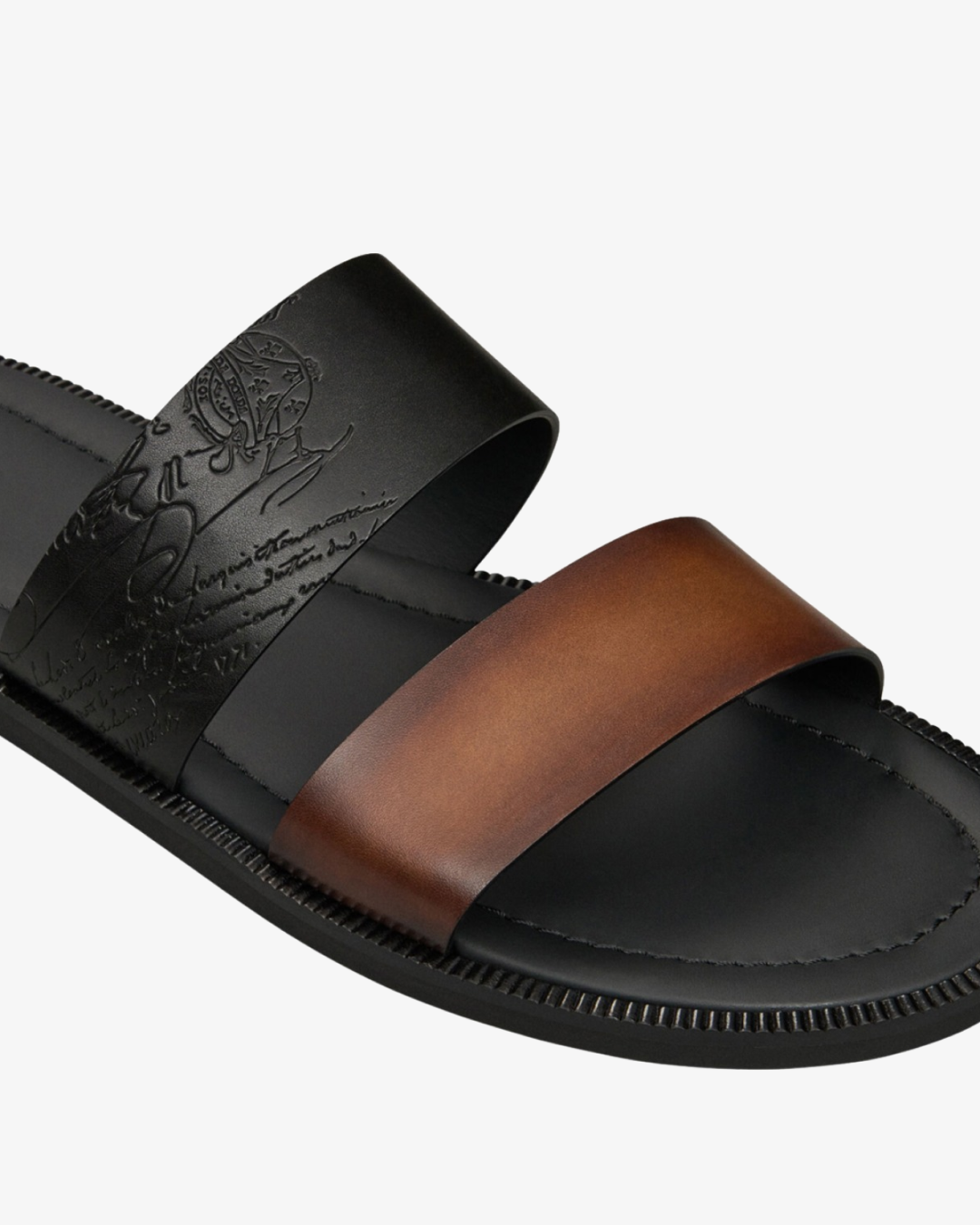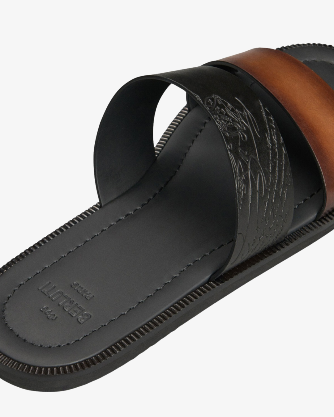 Berluti Debossed Venezia Leather Sandals - Brown.
