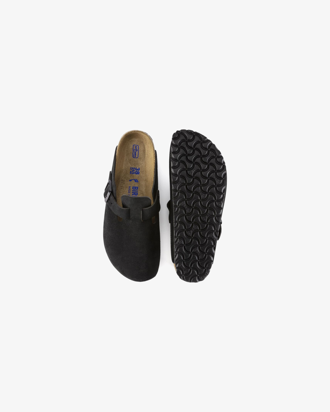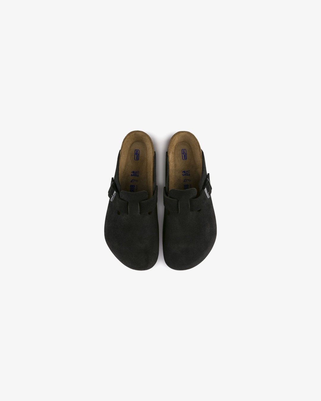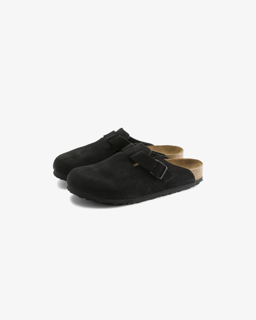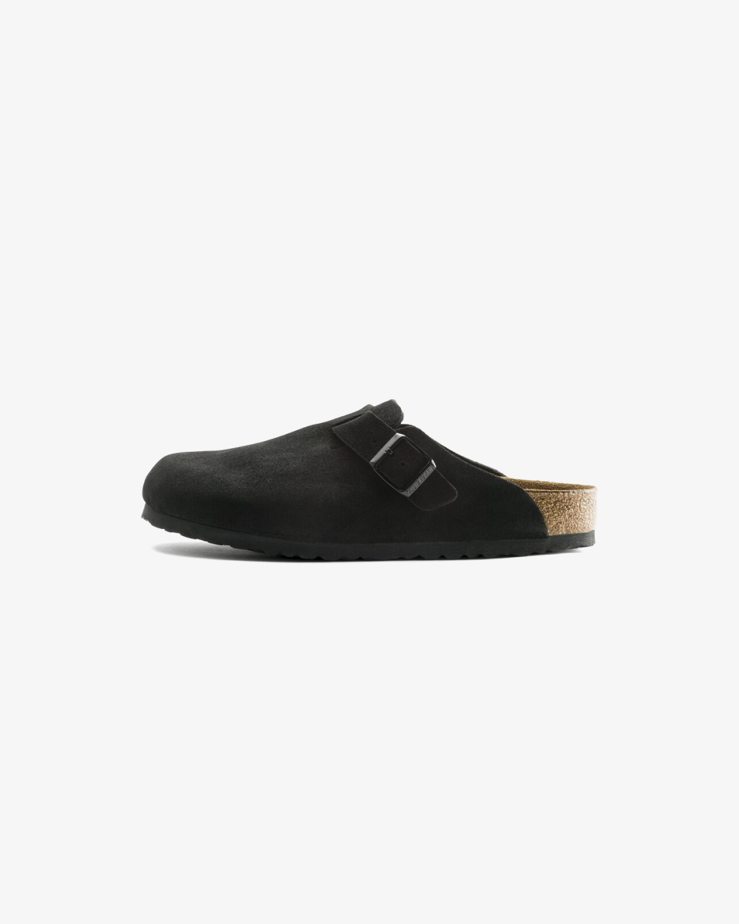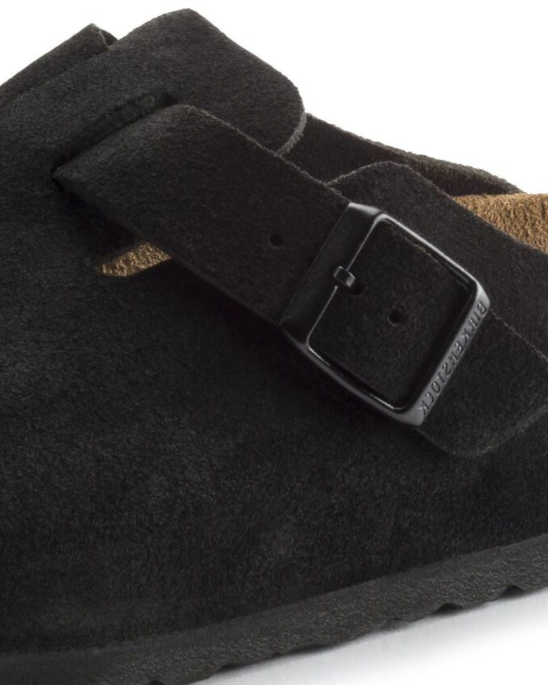 Experience timeless comfort with the Birkenstock Boston Leather "Black" Slippers. Featuring a sleek, all-black design, these iconic slip-ons combine style with Birkenstock's renowned orthopedic support. Crafted from premium leather, the upper offers a smooth, durable finish that molds to your foot over time for a personalized fit. The contoured cork footbed, lined with soft suede, provides exceptional arch support and cushioning, making these slippers perfect for all-day wear. Whether you're at home or out and about, the Birkenstock Boston "Black" Slippers deliver effortless style and unmatched comfort