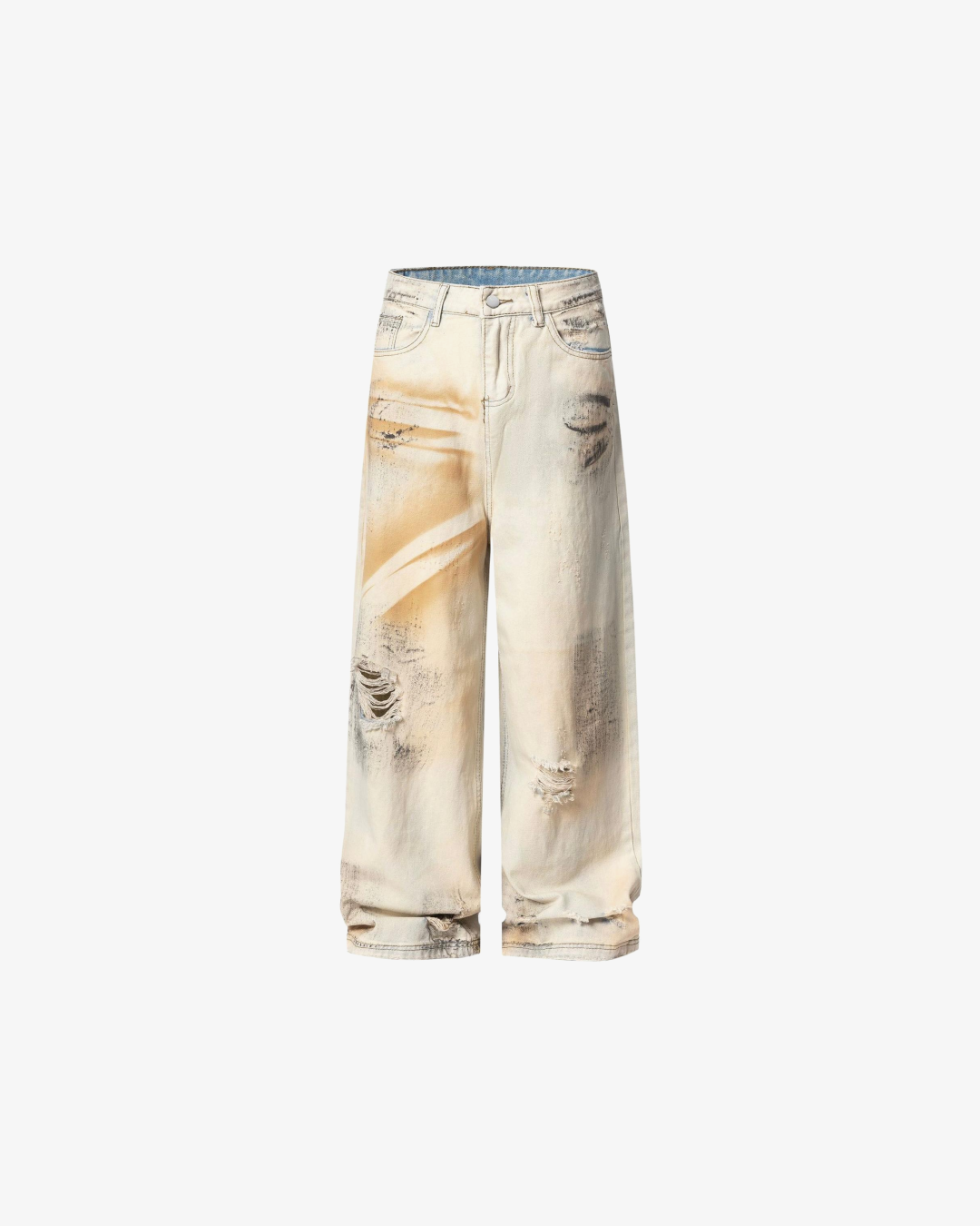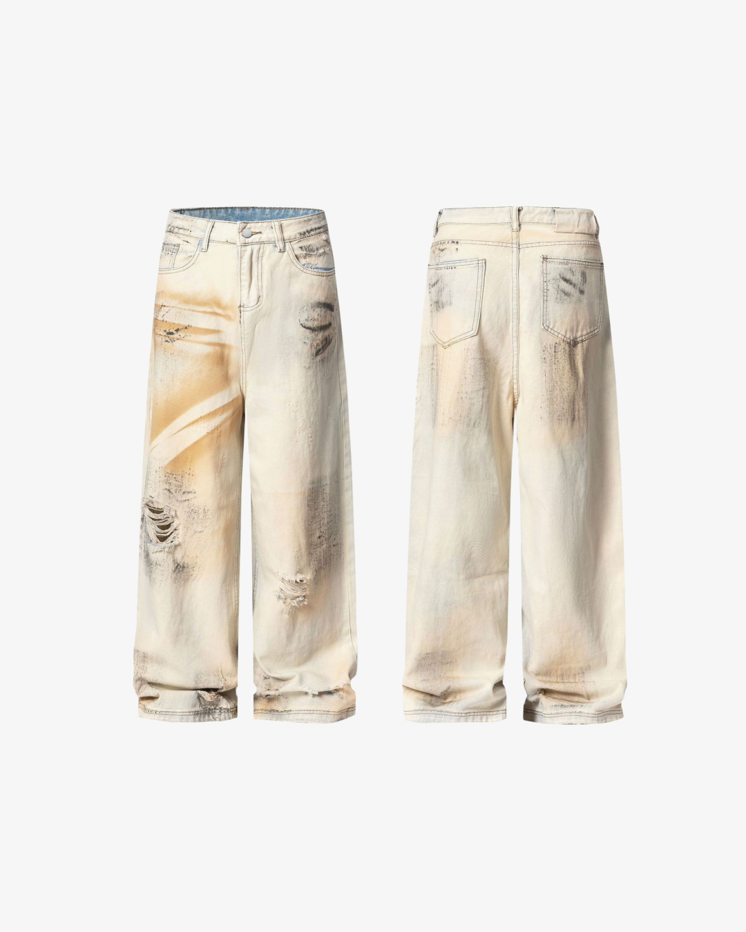 The Bleached Ripped Wide-Leg Denim is the ultimate statement piece for a bold, effortlessly cool look. Designed with a relaxed, oversized silhouette, these jeans feature heavy distressing, frayed edges, and a bleached wash, giving them a raw, lived-in aesthetic. The wide-leg cut ensures a comfortable fit with plenty of movement, while the high-quality denim construction provides durability and structure. Whether you're going for an edgy streetwear vibe or a laid-back casual outfit, these jeans make an impact.