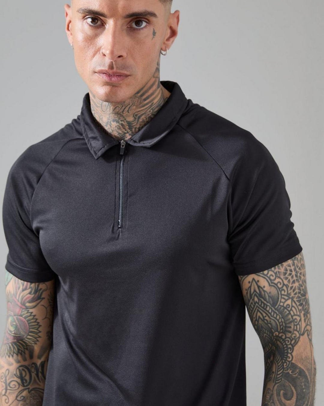 The slim fit cut gives it a modern and tailored look, complementing the taller frame for a more flattering silhouette. The classic polo collar and button placket maintain a sophisticated touch, while the lightweight and stretchy fabric allows for unrestricted movement, making it ideal for active wear.