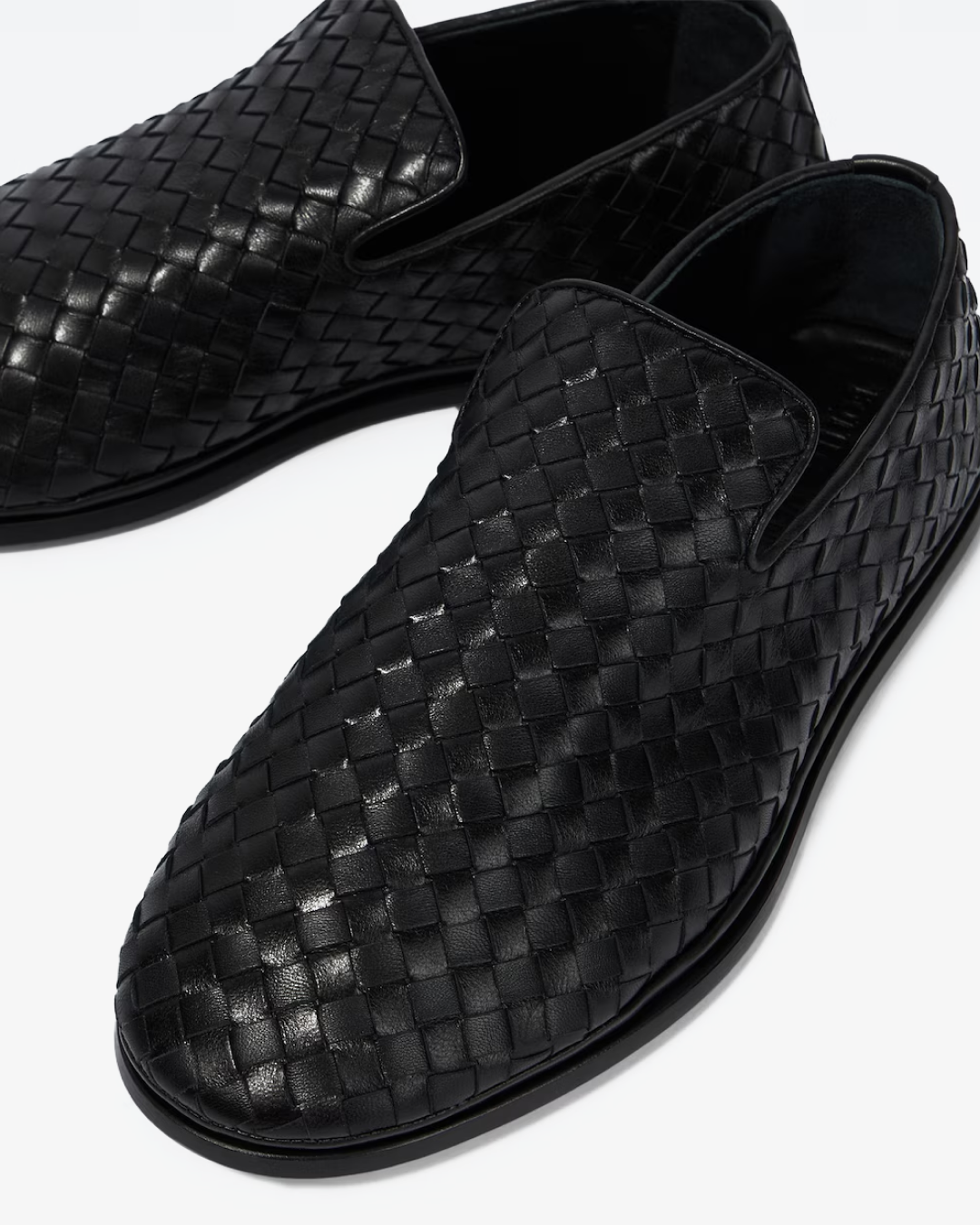Bottega Veneta Pure Leather Woven Intrecciato Men's Foldable Loafer