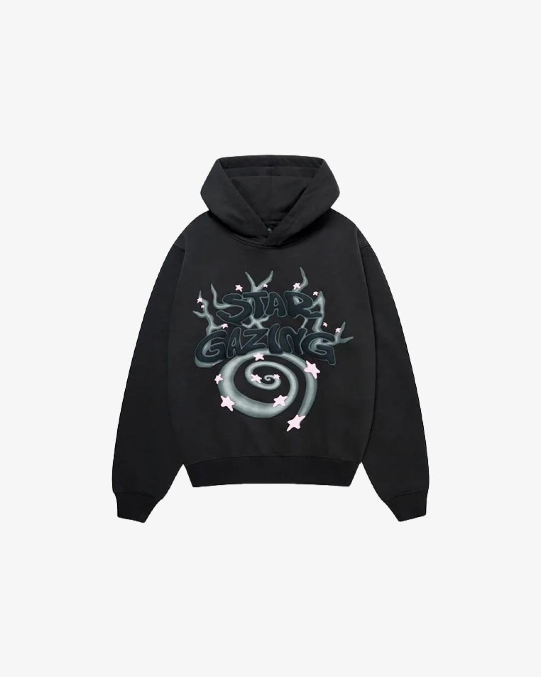 The design is dominated by a stargazing motif referring to the seemingly peaceful night sky with stars. The celestial is exquisite and detailed and thus would adorn any wardrobe and be a standout when worn. Whether you are home alone, going out informally, or searching for a gift this hoodie fits every occasion.