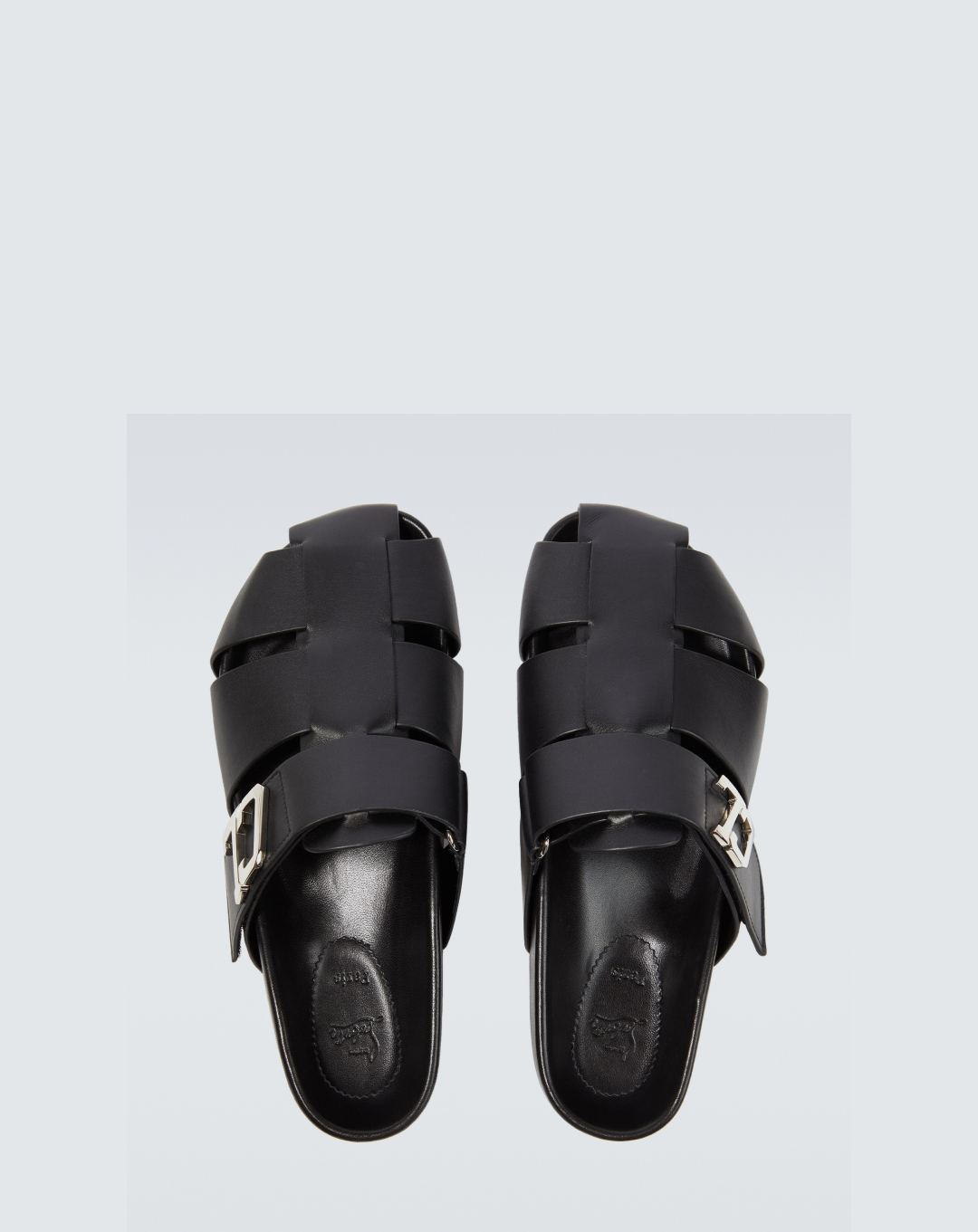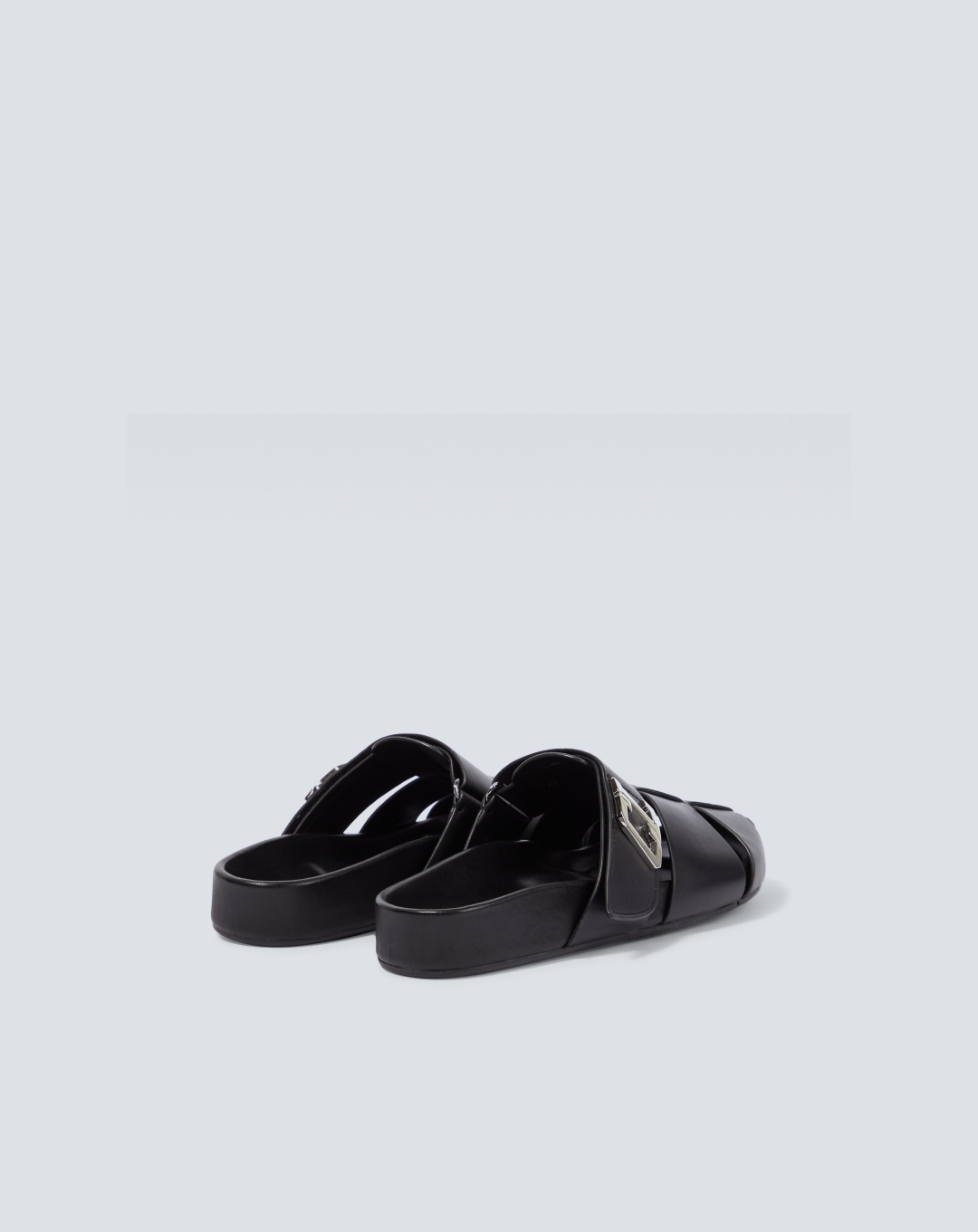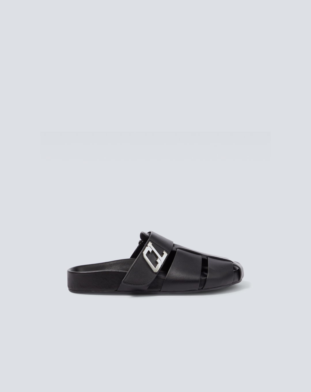 The Christian Louboutin Abubizz Leather Slippers offer a luxurious and contemporary take on casual footwear. Crafted from smooth black calf leather, these sleek mules are designed on the Maison’s Bizz last, providing a lightweight sole that molds comfortably to your foot while offering subtle height and superior cushioning. The design features three wide leather straps, with the top strap showcasing a hook-and-loop closure adorned with a CL monogram, delivering both style and functionality. The iconic red sole adds a signature touch, ensuring these slippers stand out in any setting.