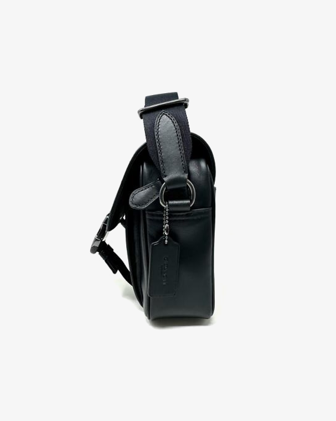 The COACH Track Crossbody Bag in Black is a sleek and functional everyday essential, reimagined with a bold mix of colors for extra edge. Crafted from refined pebble leather and smooth glovetanned leather, this bag features modern colorblocking that adds visual depth to its compact, structured silhouette. Designed for versatility, it includes an adjustable webbed strap, an exterior zip pocket for quick access, and an organized interior that fits your phone, wallet, keys, and more. Finished with subtle Coach branding, this piece balances sporty utility with downtown polish.