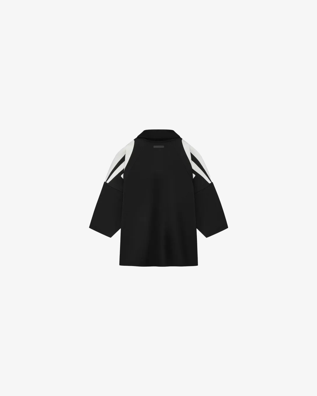 The Fear of God Athletics Goalie Jersey in Black is a bold fusion of sportswear and high fashion, embodying Fear of God’s signature minimal yet elevated aesthetic. Crafted from premium technical fabric, this jersey features a relaxed, oversized silhouette that provides both comfort and a statement look. The subtle branding, tonal stitching, and athletic-inspired detailing give it a modern edge, while the ribbed cuffs and structured shoulders add a refined touch.