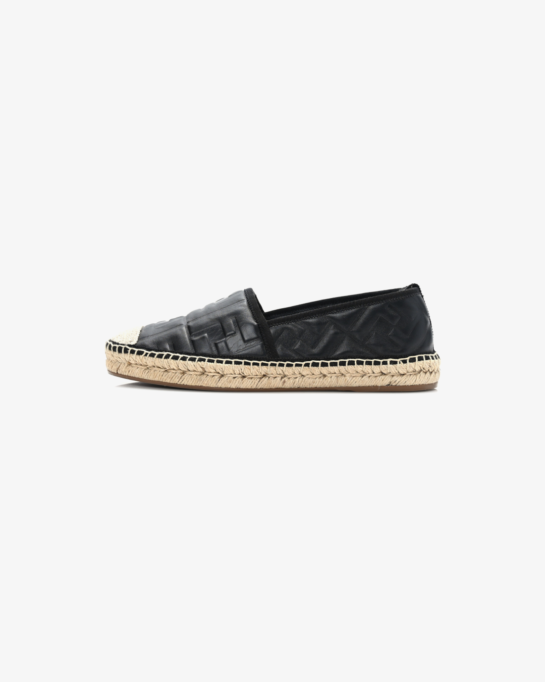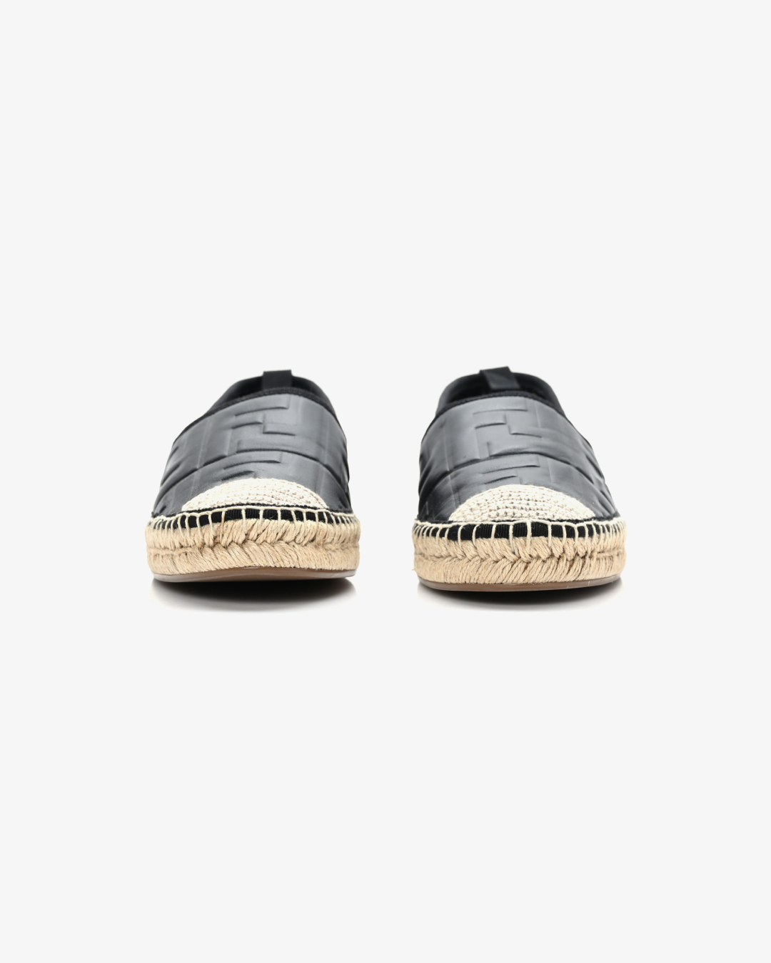 The sleek black design effortlessly complements any outfit, while the classic espadrille silhouette brings a laid-back yet refined style. The jute-wrapped midsole offers a traditional espadrille look, and the rubber sole ensures traction and durability for everyday wear. Perfect for casual outings or a stylish vacation look, the Fendi Nappa FF Embossed Espadrilles combine comfort, luxury, and timeless fashion.