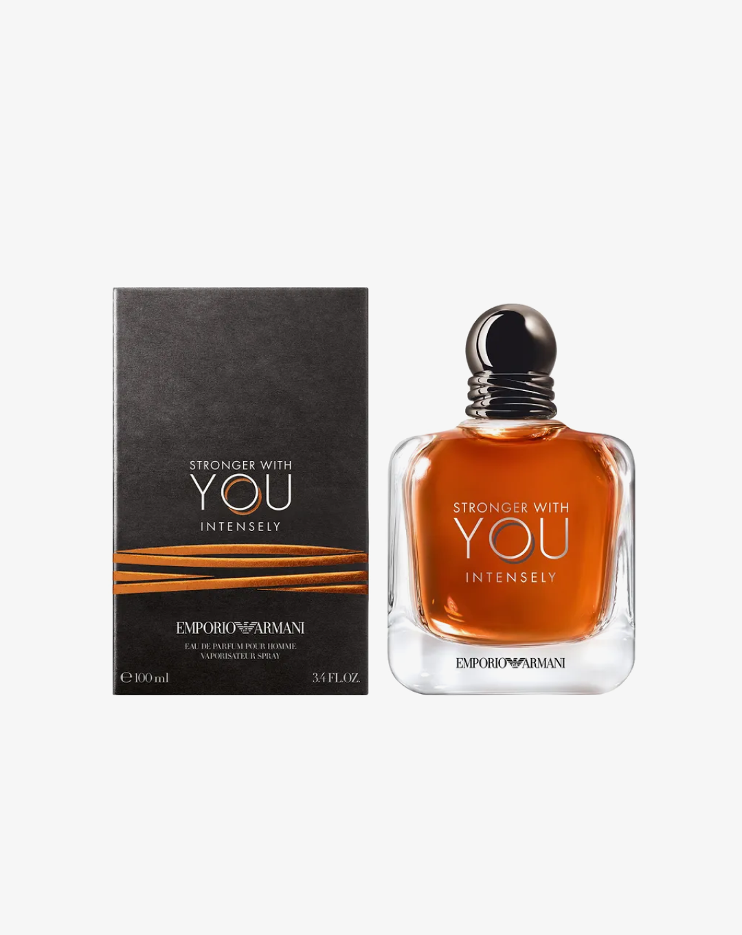 Stronger With You Intensely is the new and intense masculine fragrance by Emporio Armani. This perfume is characterized by a warm vanilla accord and lively notes of amber woods, contrasting with the bold hint of pink pepper in the top notes. The color of the aged cognac fully reflects the strong character of the fragrance.
