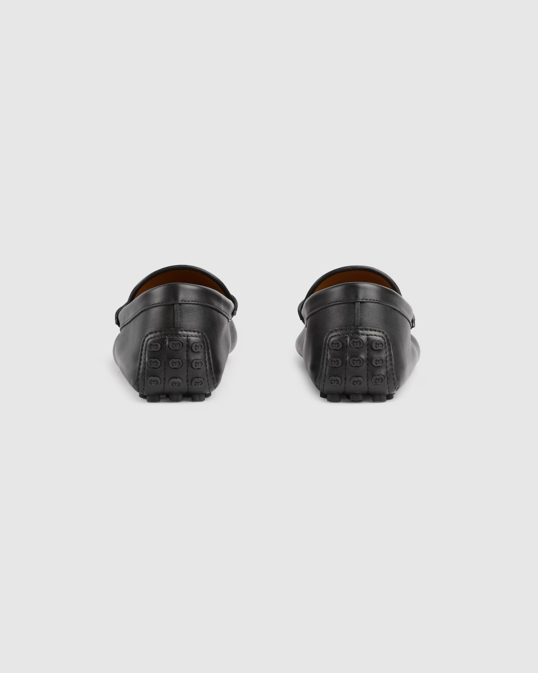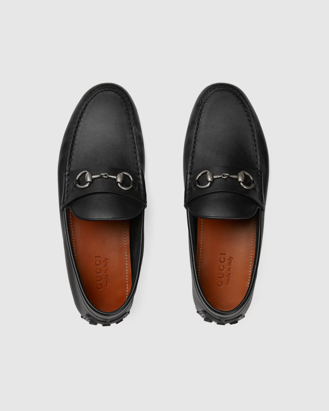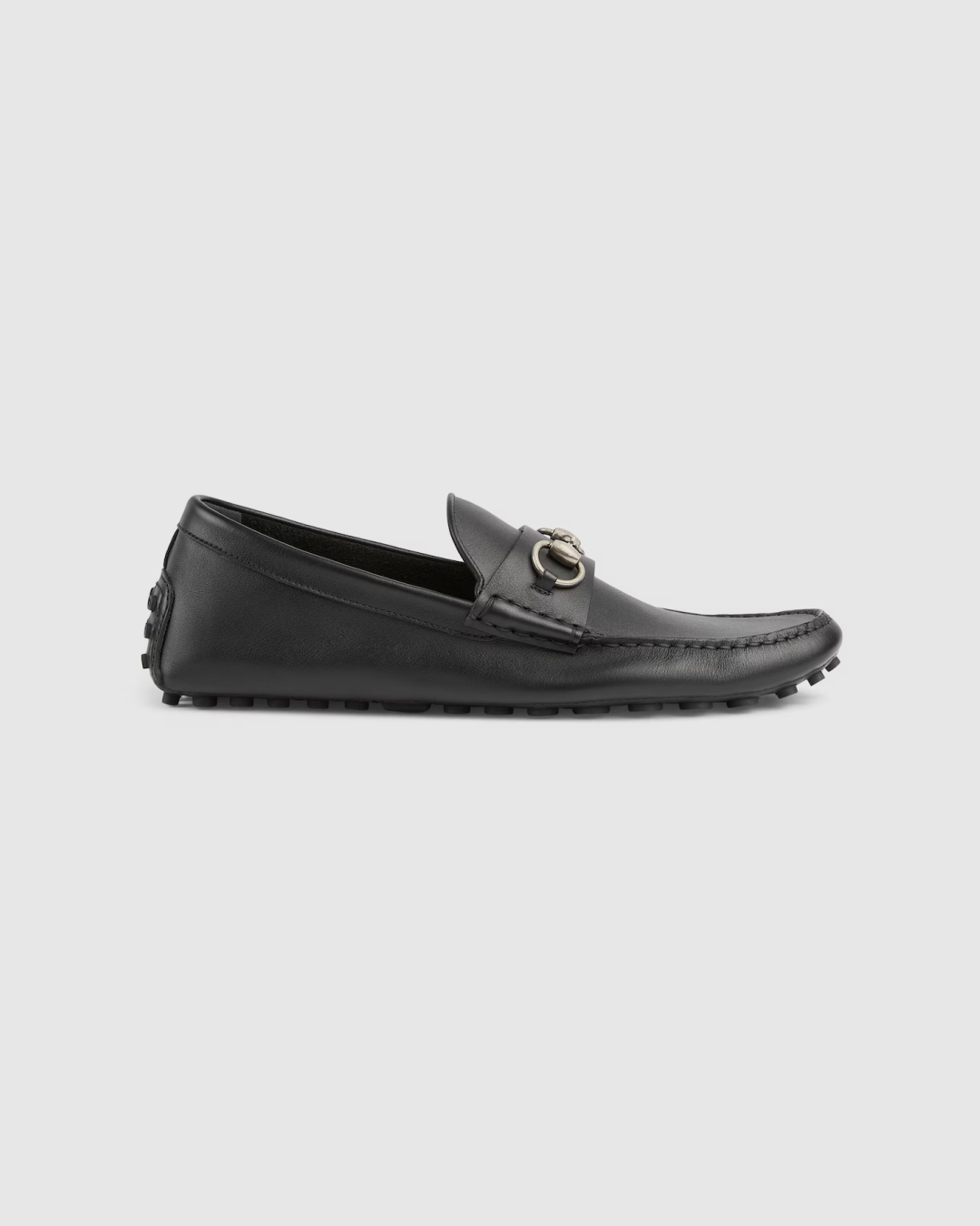 This pair of drivers pays homage to the House's equestrian heritage, with the iconic Horse-bit symbol taking center stage. Crafted from luxurious black leather, these men's shoes feature silver-toned hardware and a pebbled rubber sole for added comfort.