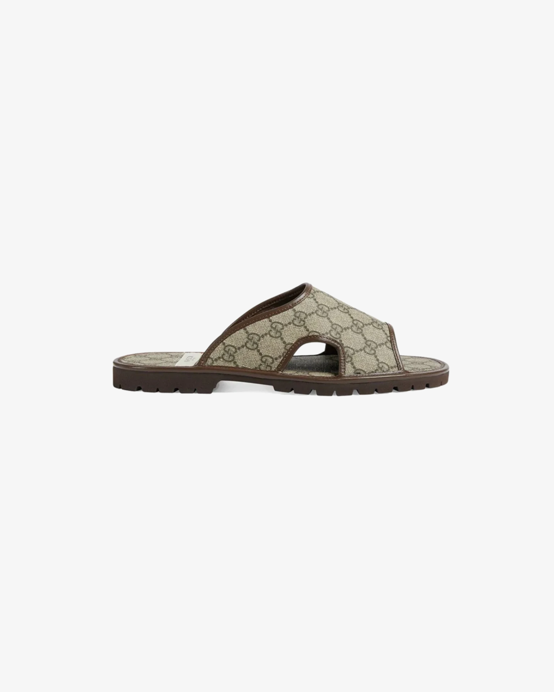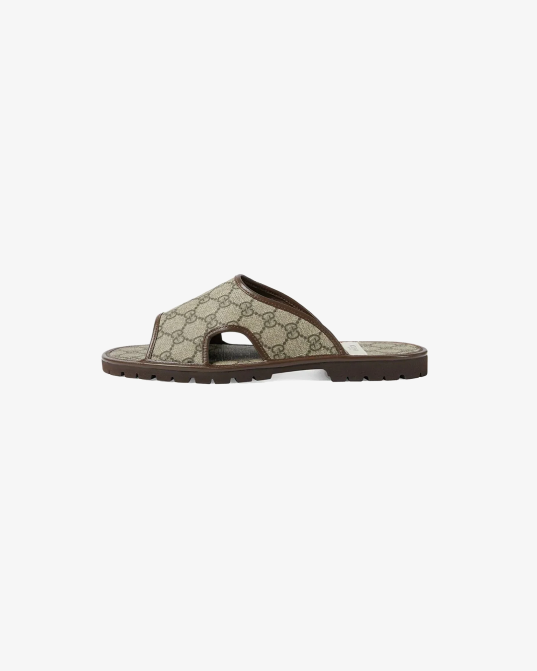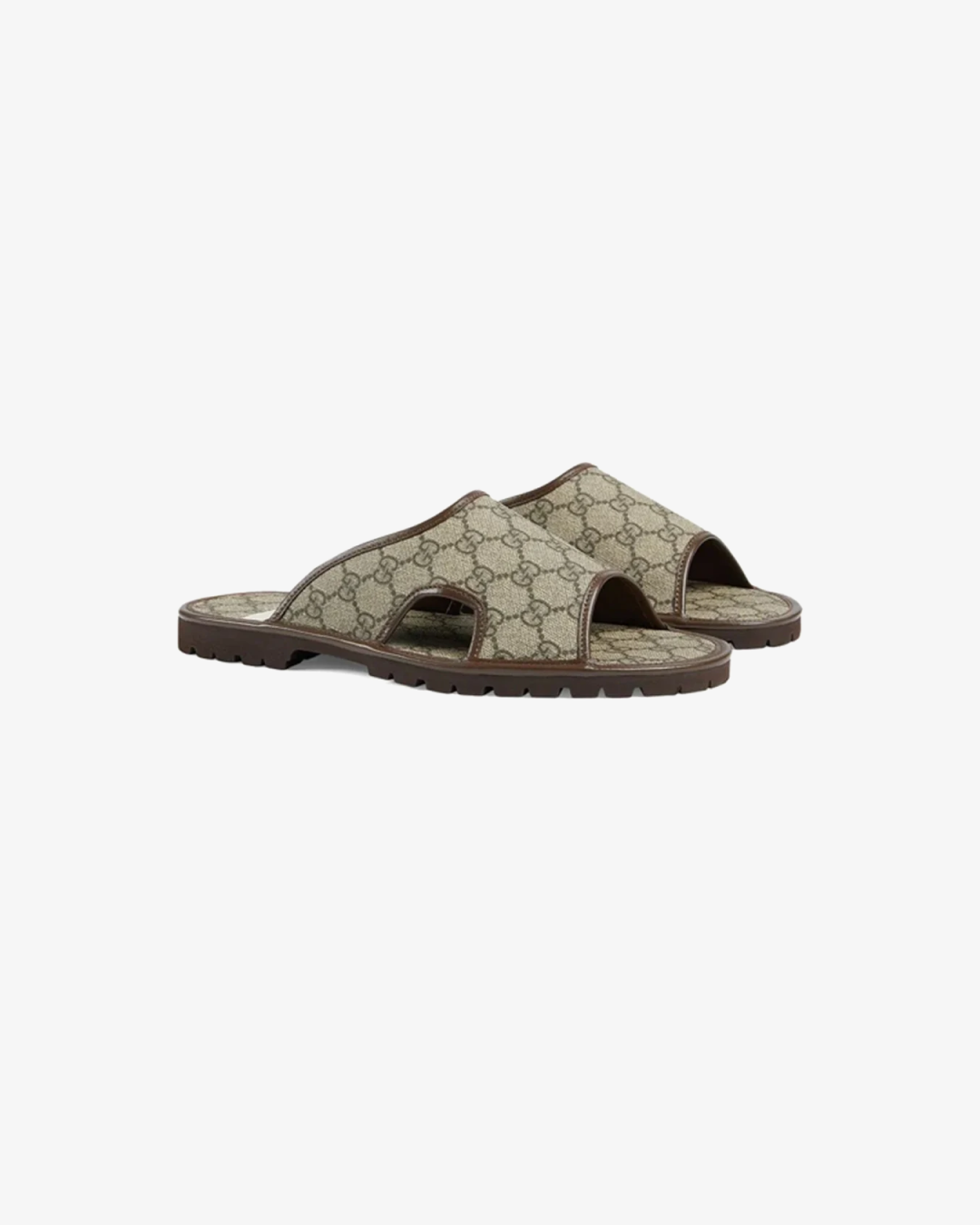 Step into luxury with the Gucci Men’s GG Supreme Sandal, a perfect blend of sophistication and comfort. Crafted from Gucci's iconic GG Supreme canvas, these sandals offer both durability and style. The sleek design features leather trim and a molded footbed for maximum comfort, making them ideal for casual outings or upscale beachwear.