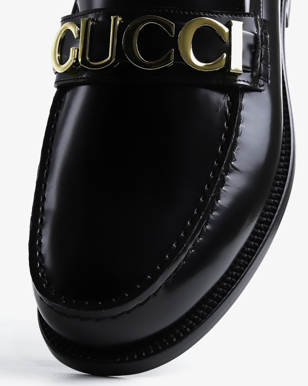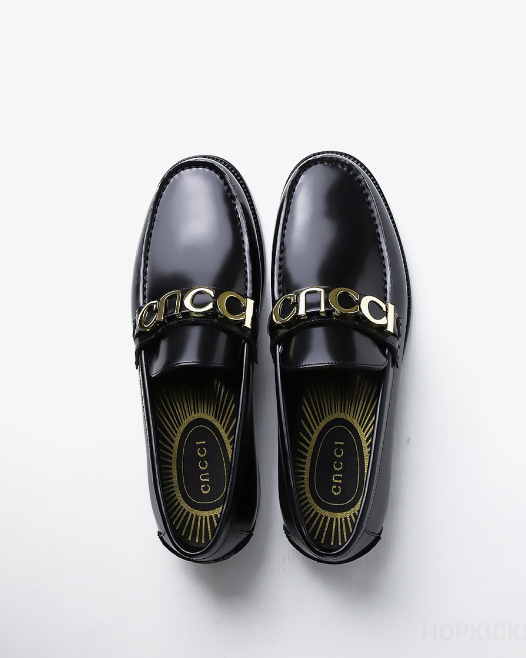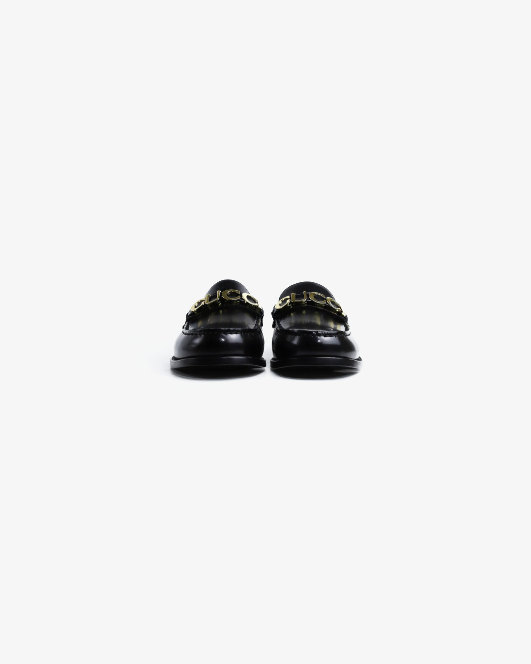 The standout detail is the signature Gucci snaffle bit hardware across the vamp, adorned with the iconic interlocking G logo, symbolizing the brand's heritage and prestige. Designed with a slim silhouette, these loafers are perfect for formal occasions or upscale casual settings.