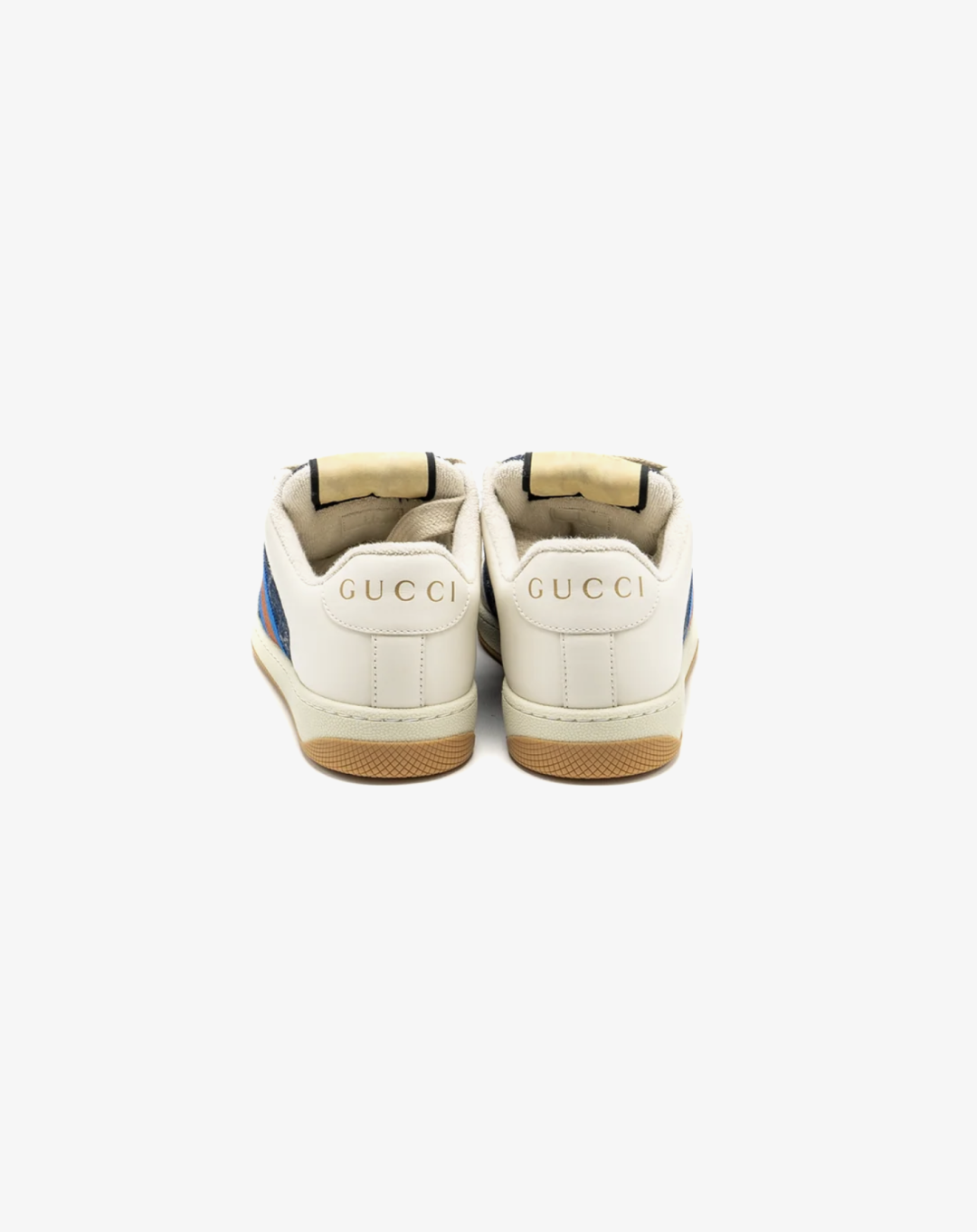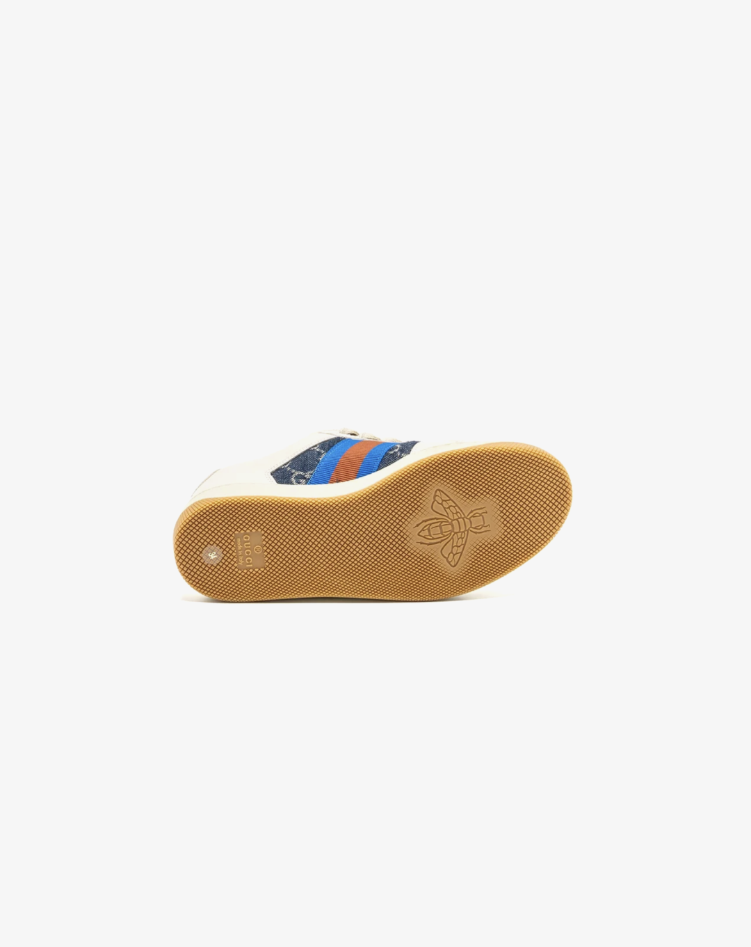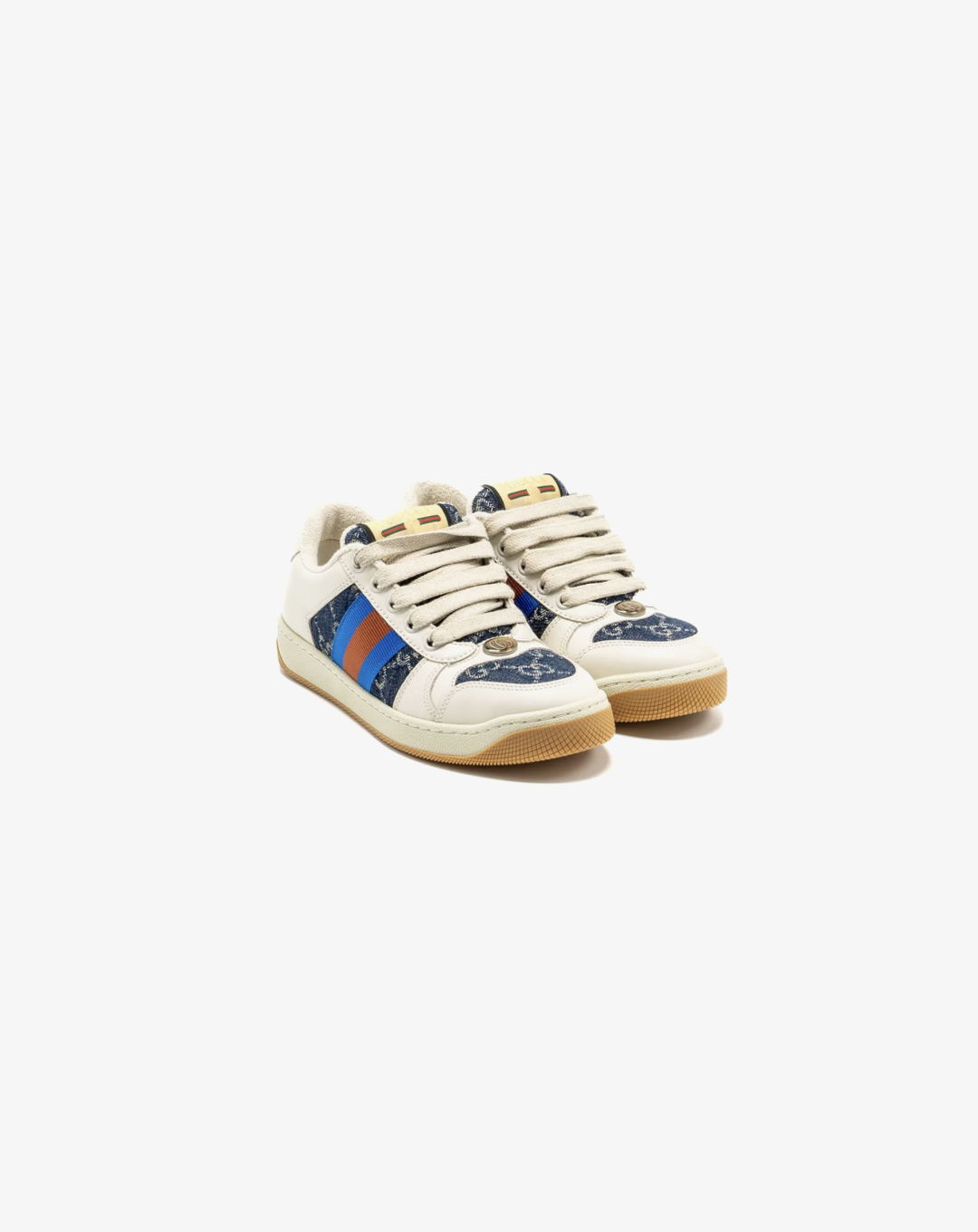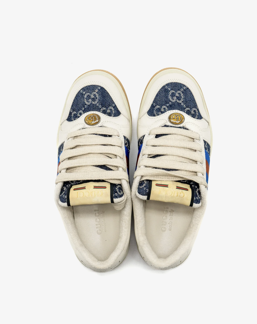 Gucci’s classic Screener Sneaker is reinvented with accents of denim.