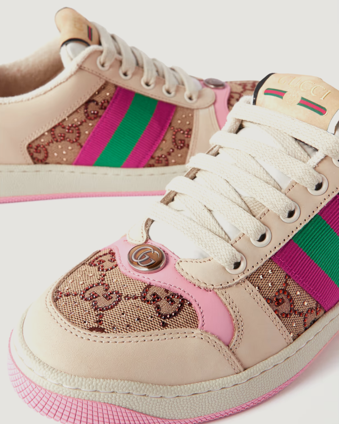 Gucci Women's Screener GG 'Pink' Sneaker with Crystals