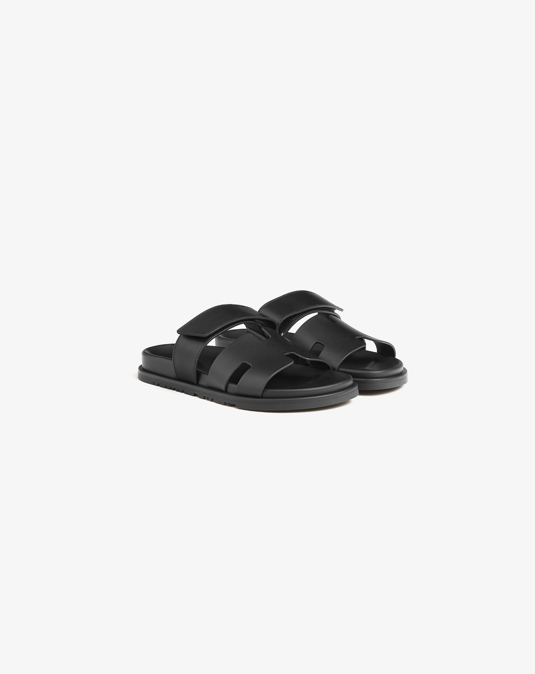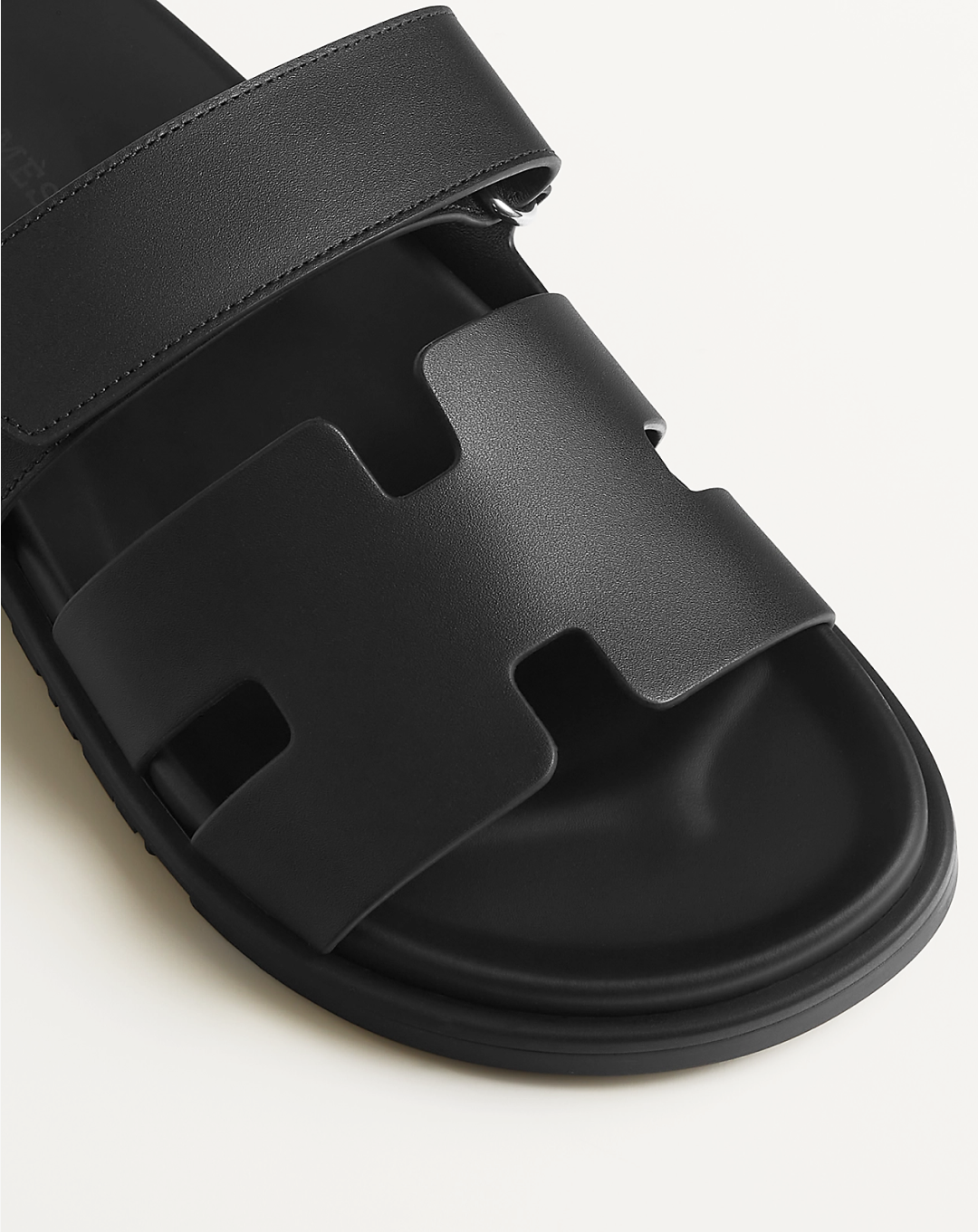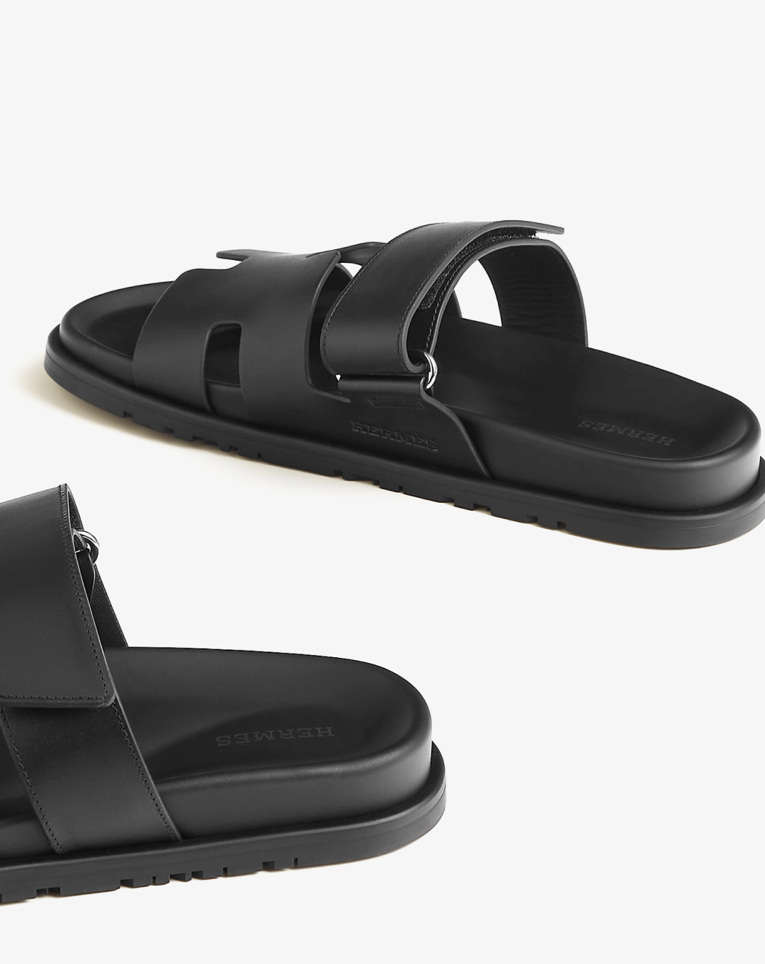 Introduced in 2020, the Hermès Chypre sandal has quickly become a favourite for all H collectors - a sleek design for a comfortable, casual look all year round. This classic pair is crafted in black calfskin leather with rubber soles and adjustable straps. This style comes in pristine condition and with the original dust bag and box. This pre-owned pair will make a great contribution towards sustainability and an even greater contribution towards your wardrobe.