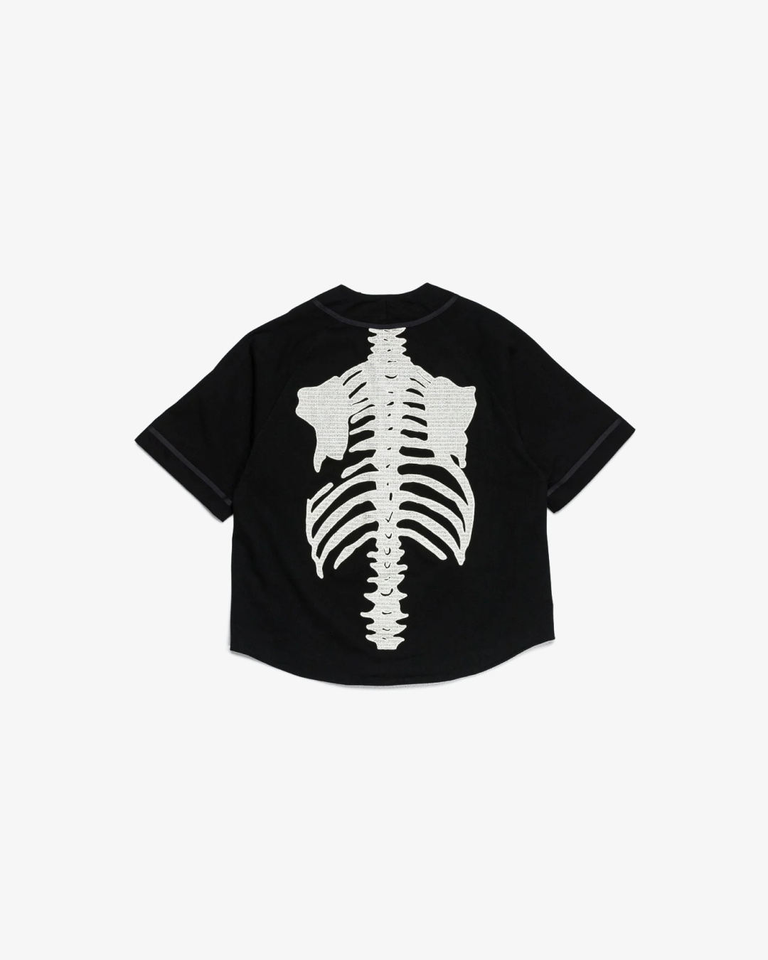 Crafted from high-quality cotton, this piece features a vintage-inspired, button-down design with contrasting sleeves, staying true to the classic baseball silhouette. What sets it apart is the signature bone motif, embroidered or printed prominently across the chest or sleeves, adding a playful and edgy twist to an otherwise laid-back look