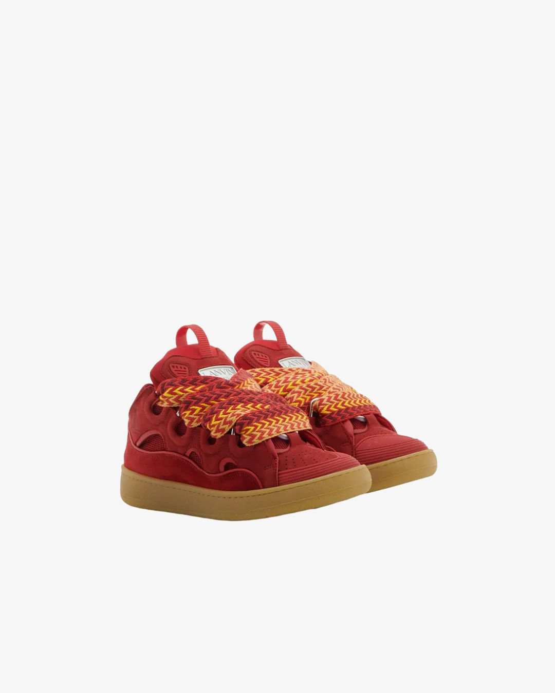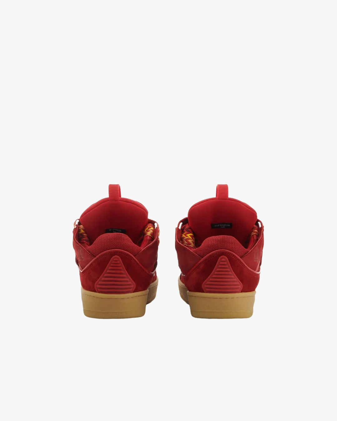 Lanvin Leather Curb Red Suede Tennis Low-Top Sneakers