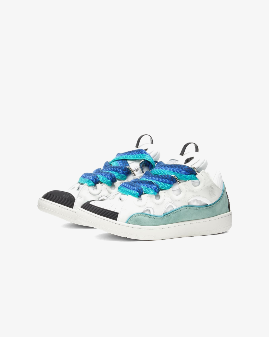 Lanvin Leather Curb 'White/Green' Suede Tennis Low-Top Sneakers