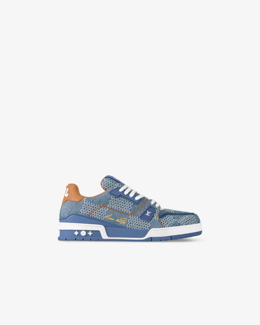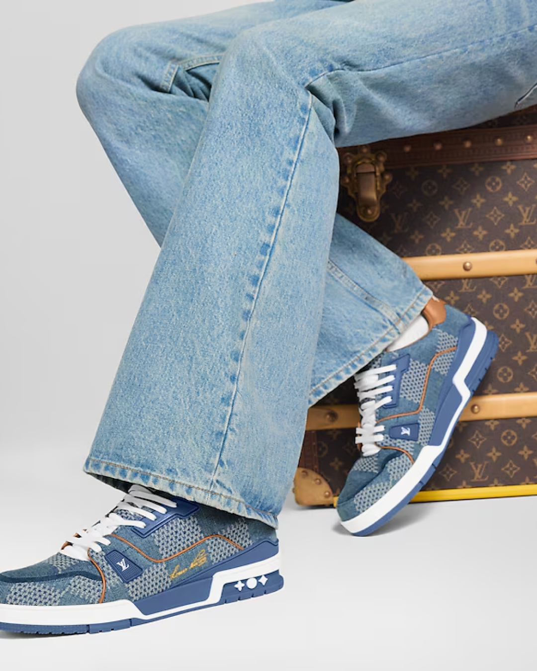 Let the sneaker’s texture and print take the spotlight. Pair them with black or dark-wash denim, a clean white tee, and a cropped bomber or varsity jacket for that elevated streetwear edge. You can also play into the pattern by styling with neutral cargos and an oversized hoodie or flannel in muted tones. For a more fashion-forward fit, try wide-leg trousers and a boxy tee layered with a denim overshirt, tonal or mismatched. However you move, the LV Trainer in Damier 3D Denim brings heat, heritage, and hype to every step.