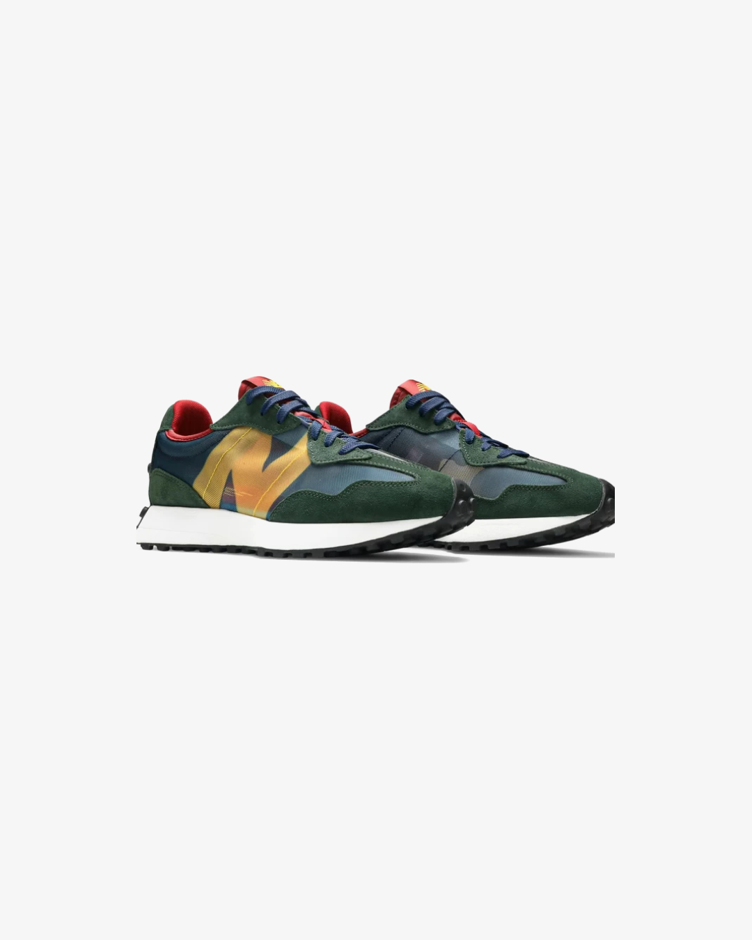Embrace retro style with a modern twist with the New Balance 327 Navy Olive Yellow Sneakers. Inspired by New Balance's running heritage from the 1970s, these sneakers combine vintage aesthetics with contemporary design elements, making them a must-have for any sneaker enthusiast.