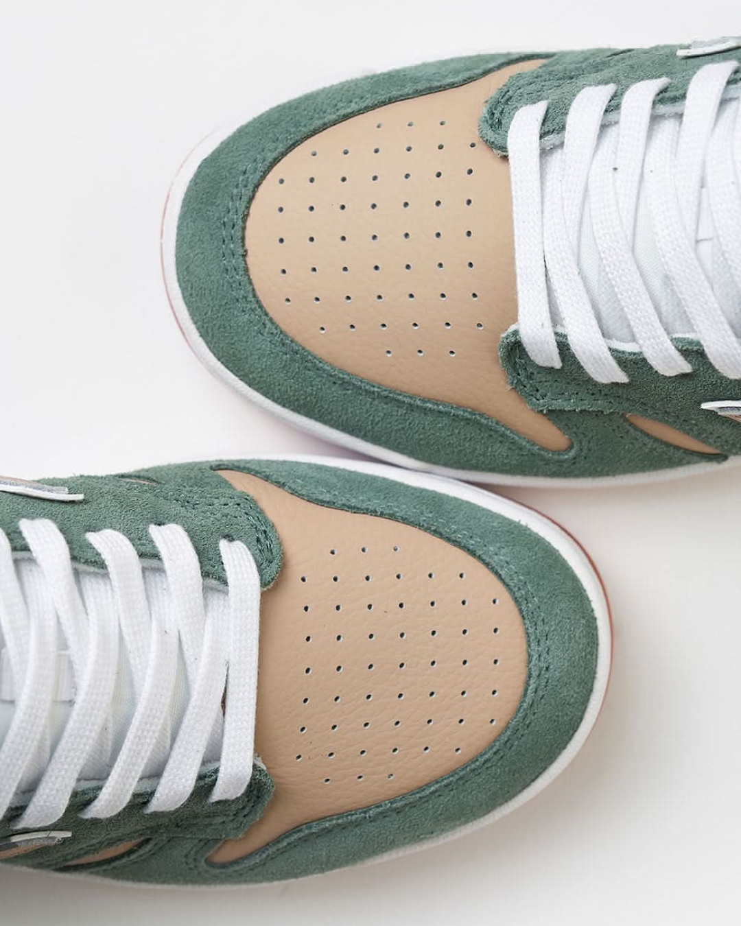 Crafted from a combination of premium suede and breathable mesh in a striking Juniper green hue, the upper delivers both visual appeal and long-lasting wear. Reinforced overlays add durability, while the padded collar and cushioned midsole provide exceptional comfort and support. A grippy gum rubber outsole ensures superior traction, making every step secure and confident.