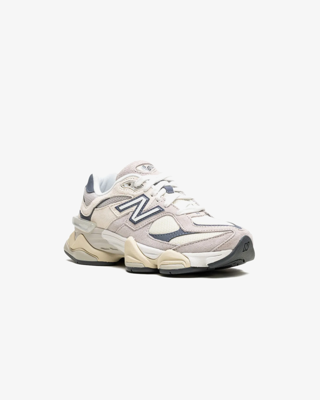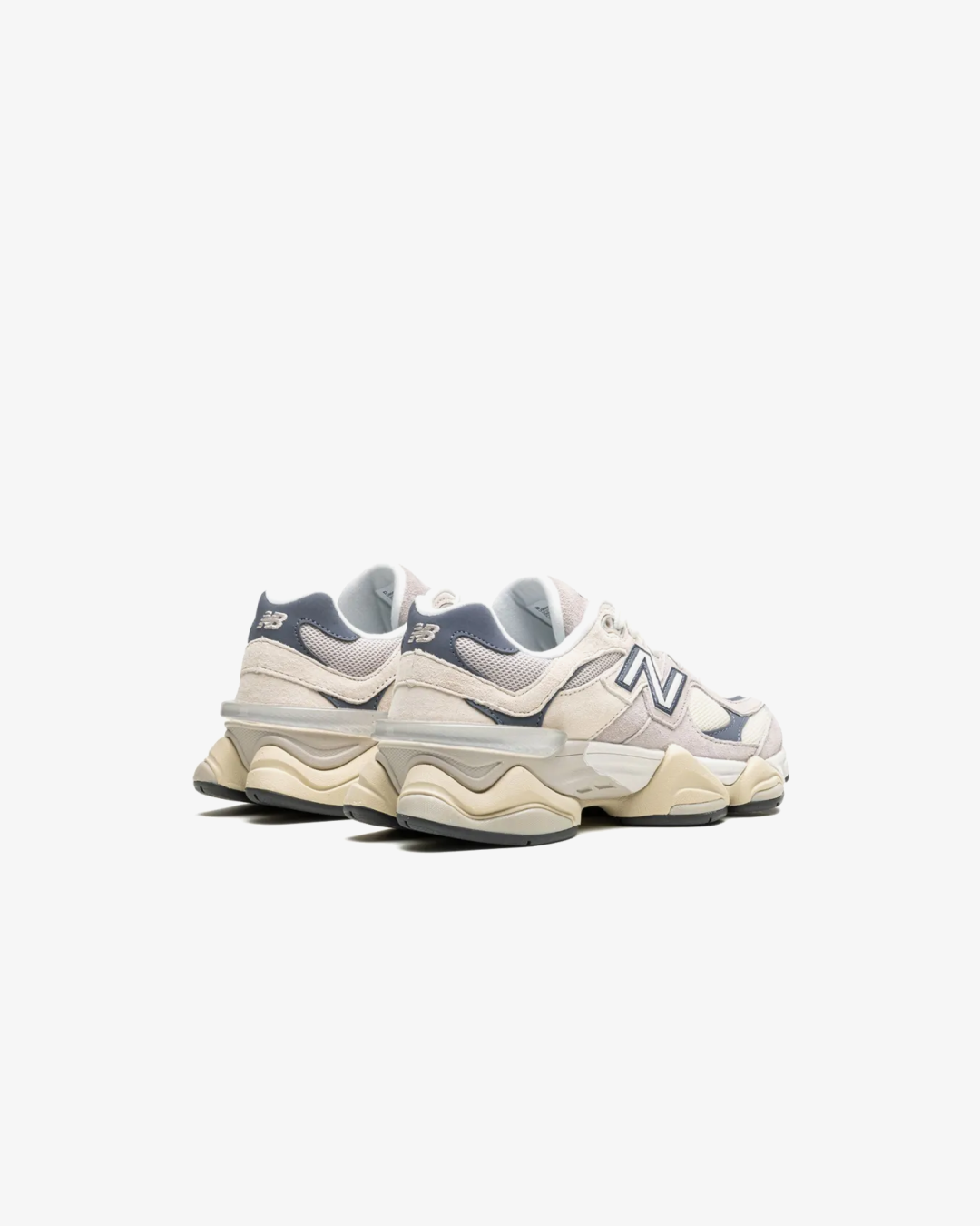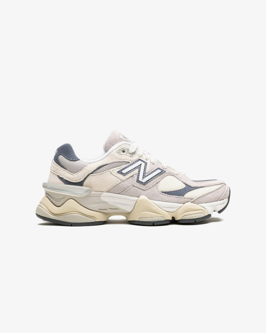 The New Balance 9060 “Moonrock Linen” merges retro aesthetics with modern innovation, drawing inspiration from the brand's classic 99X series and the Y2K era's futuristic designs. Released on November 30, 2023, this sneaker features a neutral-toned upper comprising beige mesh underlays and two-tone pigskin suede overlays. Muted navy pigments highlight the synthetic panels on the forefoot and rear, providing subtle contrast. The signature oversized “N” logo adorns the sides, while a jewel NB logo embellishes the tongue. Underfoot, the chunky midsole incorporates ABZORB and SBS cushioning technologies, ensuring responsive comfort. A translucent CR device wraps around the heel, and a segmented diamond outsole delivers traction and durability.