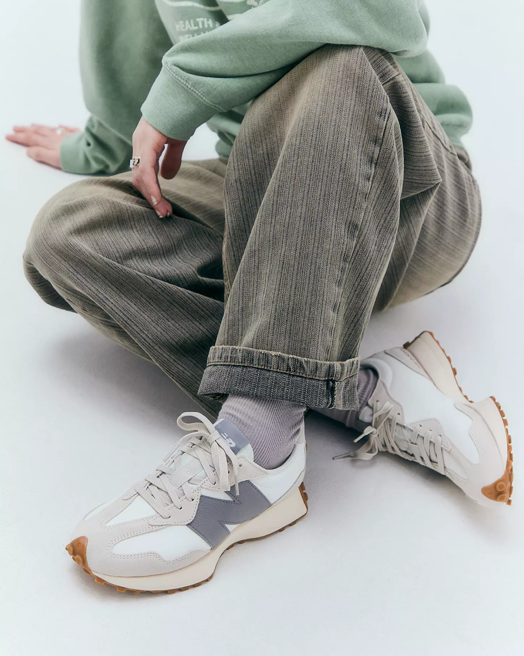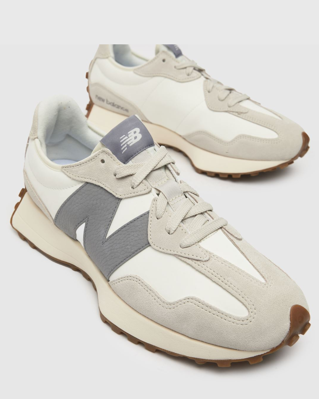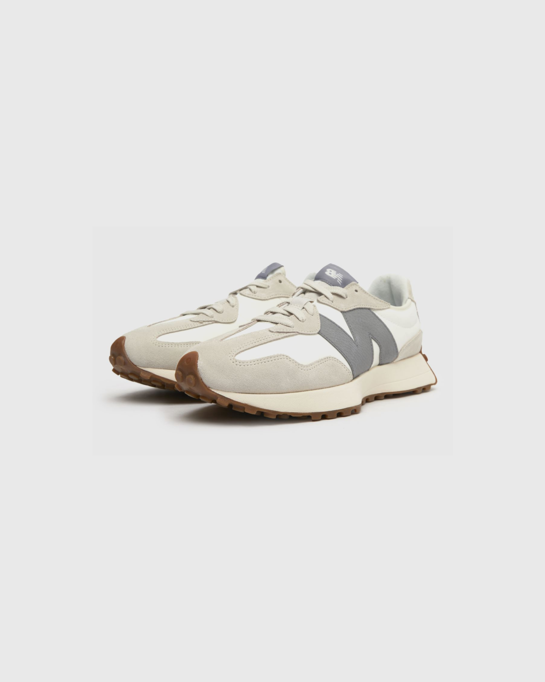 This beige and brown pair brings a New Balance heritage sneaker silhouette from the '70s into the future with an updated suede and textile upper, creating a retro look, while the oversized 'N' logo adds a bold finishing touch.