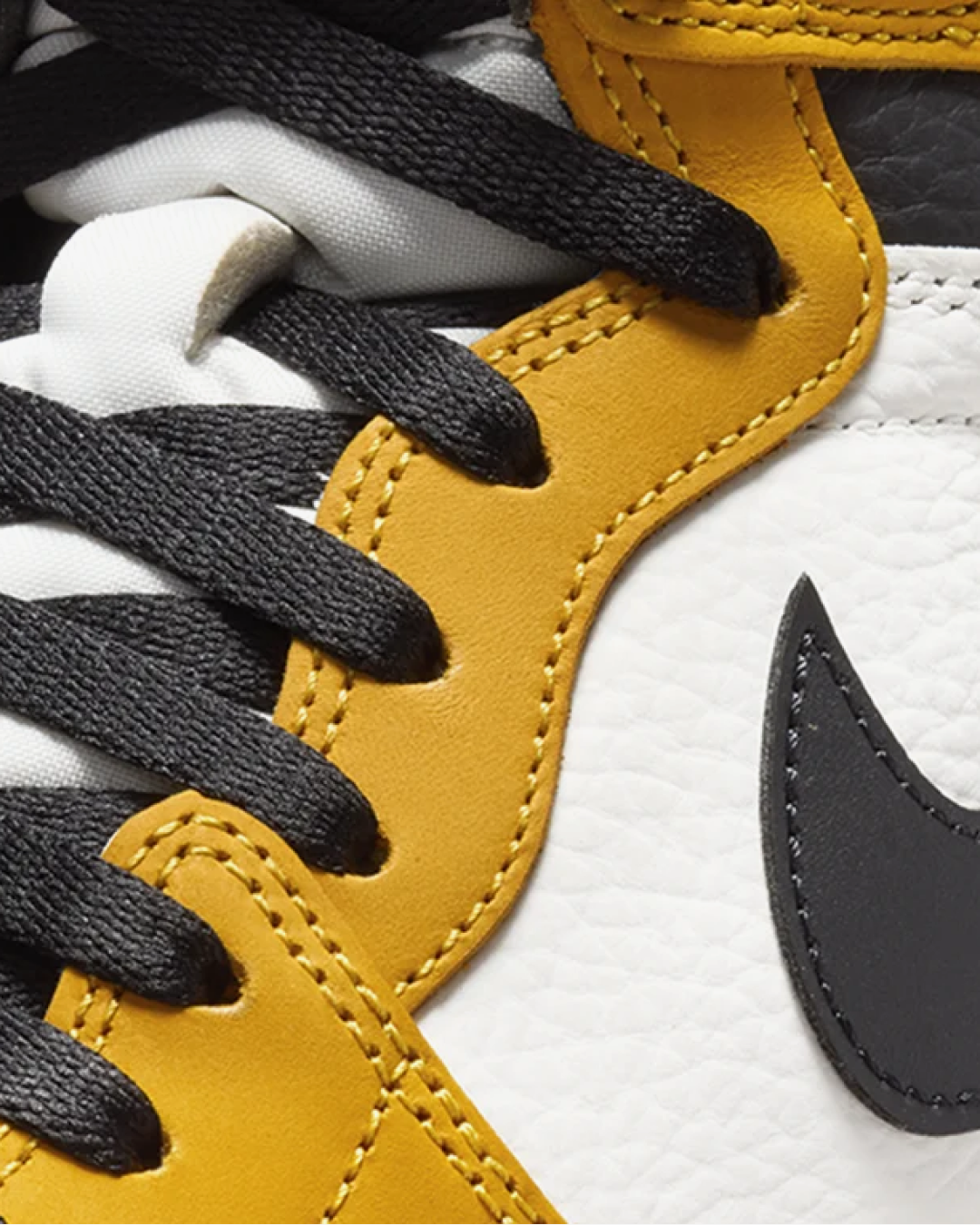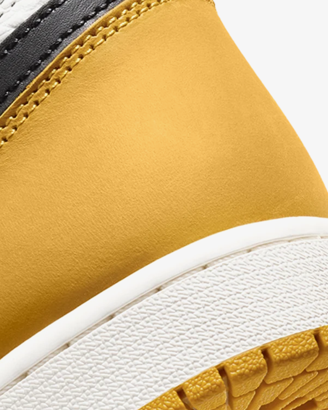 A classic, remastered. This AJ1 balances Yellow Ochre and black against a tumbled Sail leather backdrop for a clean, sophisticated finish. Refined details and retro branding bring it all together: old-meets-new style as smooth as MJ's fadeaway.