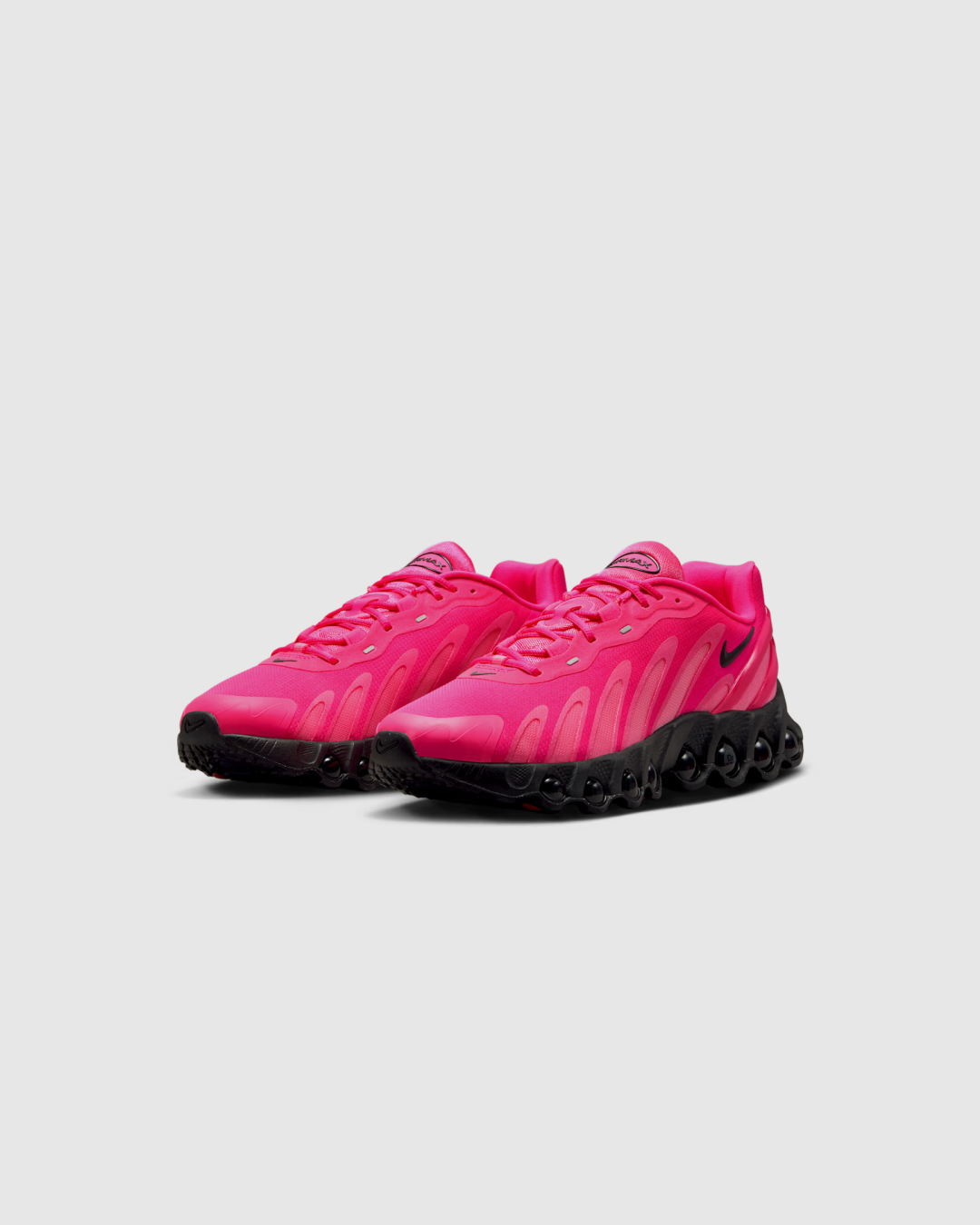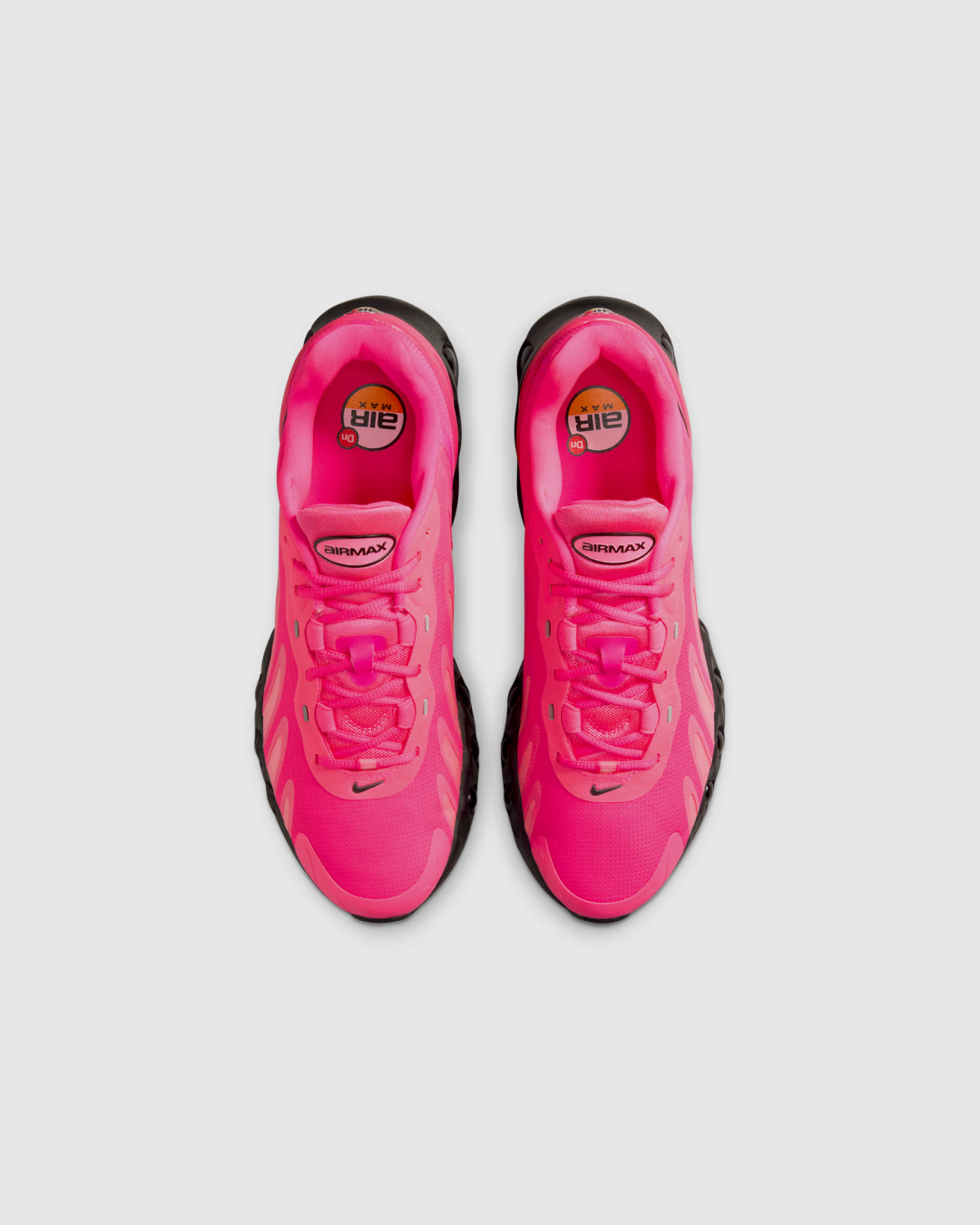 Built for comfort and performance, the Dn8 features Nike’s latest dual-pressure Air unit system that delivers responsive bounce and smooth transitions. The engineered mesh upper ensures breathability while adding a dynamic, sculpted look. Sleek overlays, gradient fades, and layered textures push the silhouette into modern territory, while the aggressive sole unit and heel bubble stay true to Air Max’s boundary-breaking roots. The Hyper Pink tone dominates the upper, accented by hits of black and reflective detailing, making this pair unmissable — day or night.