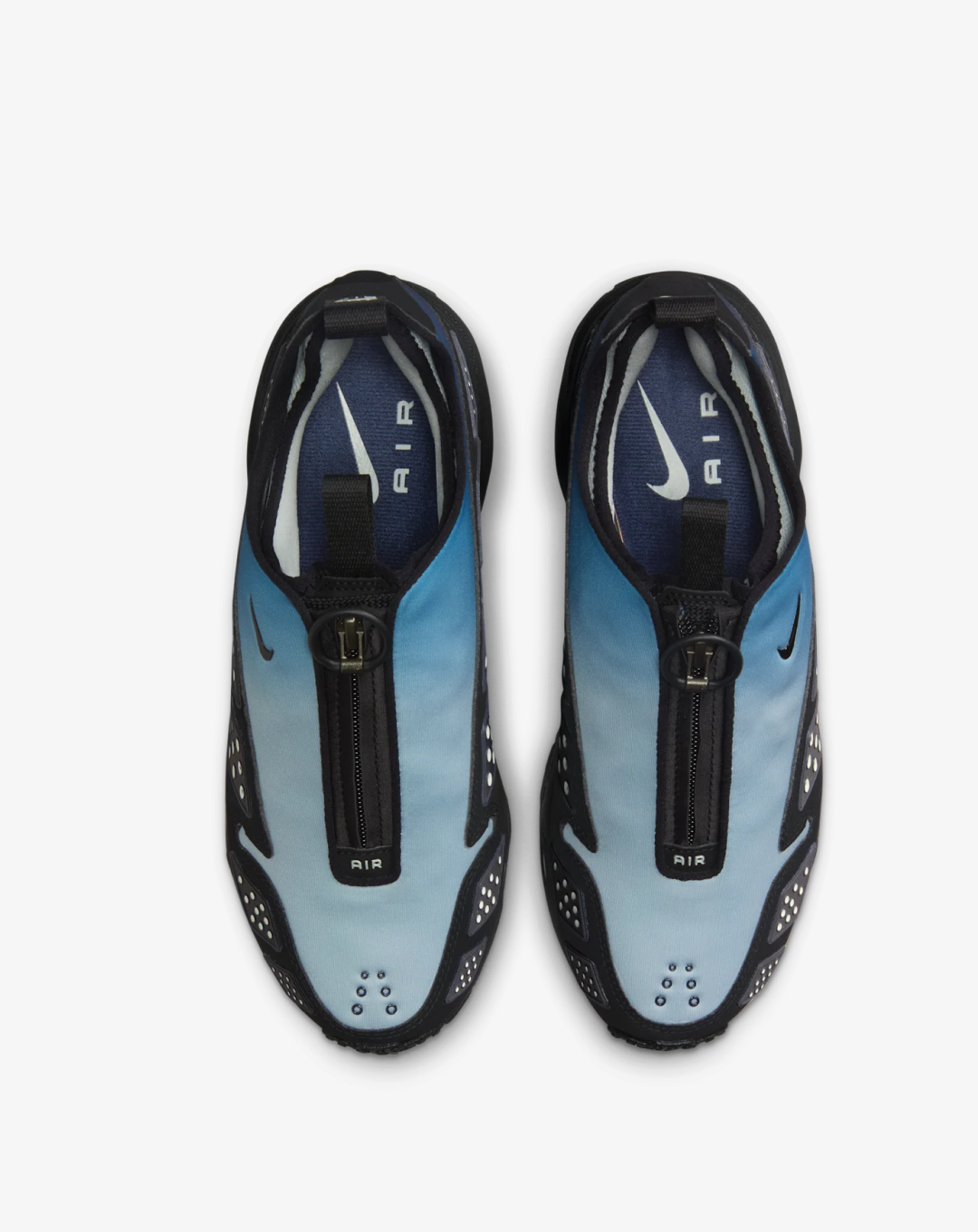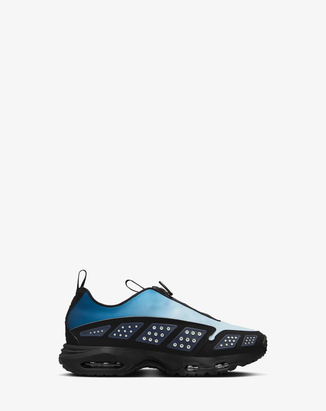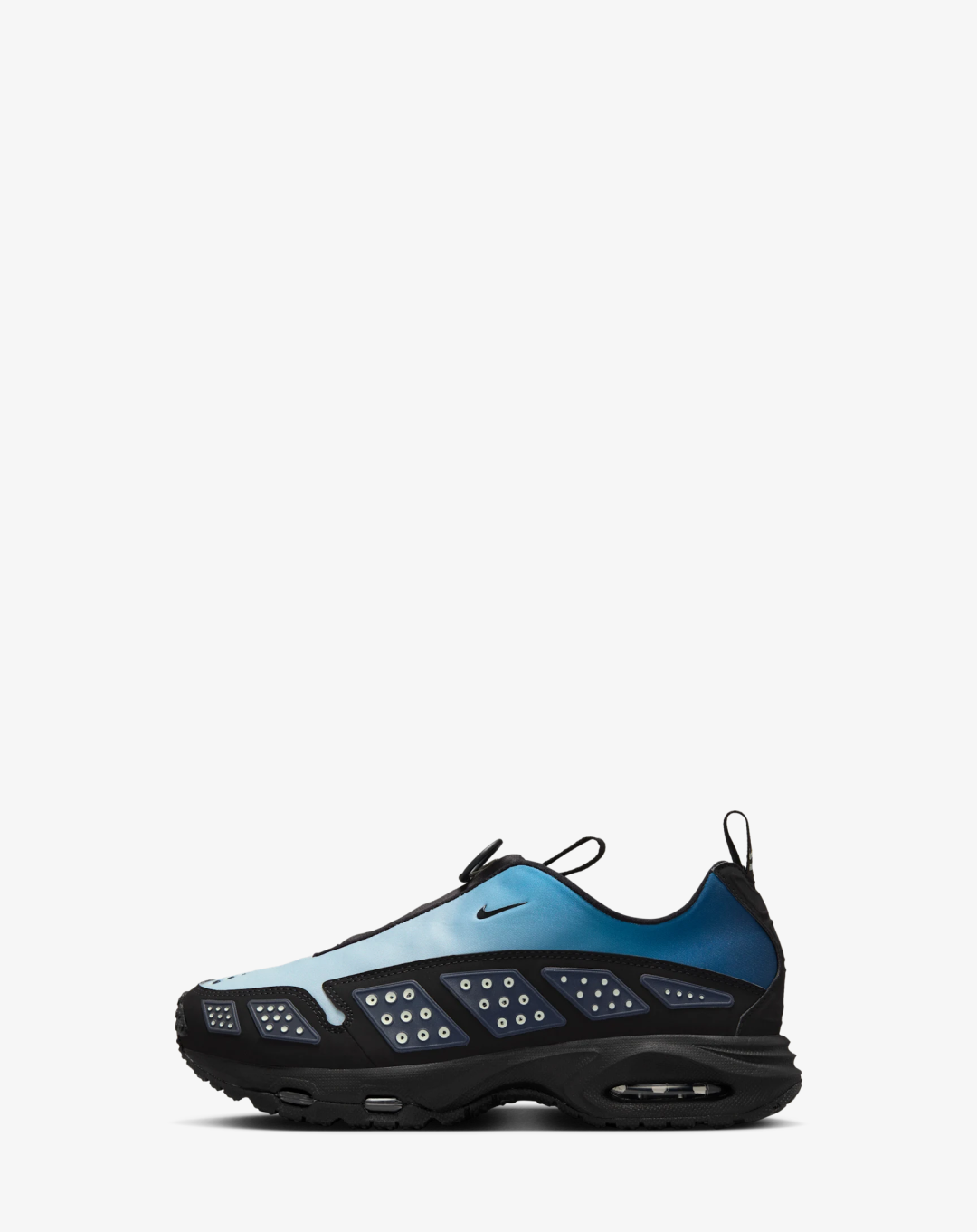 The Nike Air Max SNDR ‘Grey Haze and Obsidian’ sneakers deliver a futuristic twist on a classic silhouette, blending tech-inspired design with everyday comfort. This updated version of the early 2000s Air Sunder Max features a sleek, zippered shroud in a Grey Haze hue, offering a streamlined and modern look while protecting the laces for a clean finish. Deep Obsidian blue accents on the midsole and pull tabs provide a bold contrast, while the visible Air unit ensures responsive cushioning for all-day wear. The rugged rubber outsole enhances traction, making them as functional as they are stylish.