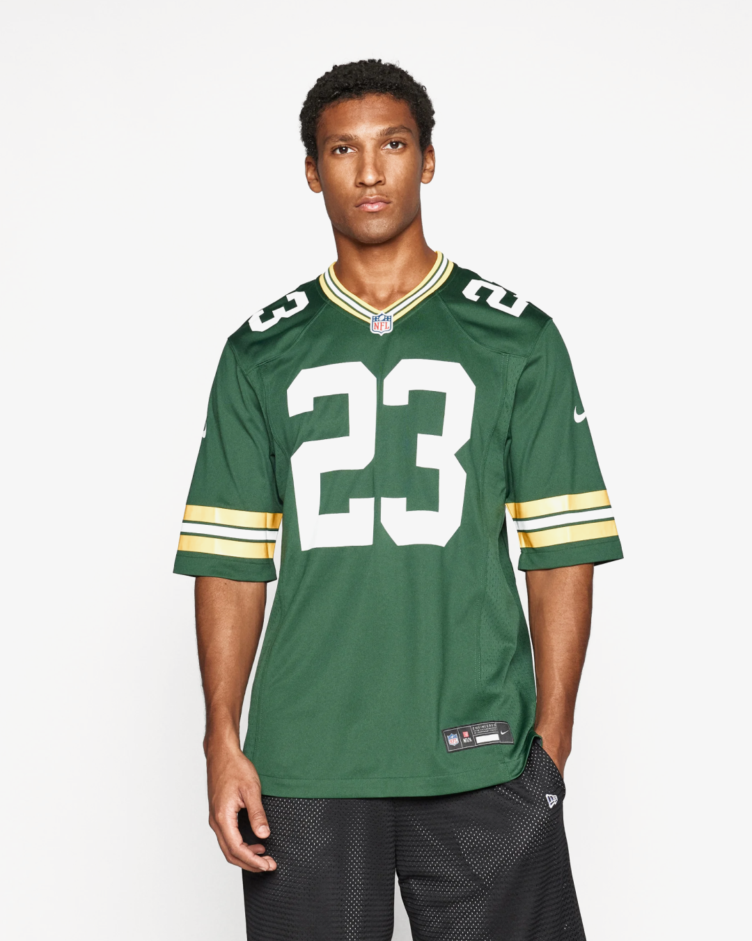 The Nike Performance NFL Jaire Alexander Green Bay Packers Club Wear is a premium piece of fan apparel, celebrating cornerback Jaire Alexander of the Green Bay Packers. Made with Nike's performance materials, this club wear offers a comfortable fit and is perfect for supporting the Packers in style. It features Alexander’s name and number, along with the iconic Green Bay Packers colors and logo, giving fans a way to showcase their loyalty to both the player and the team. Ideal for game days, casual outings, or workouts, this club wear combines style, performance, and team pride.