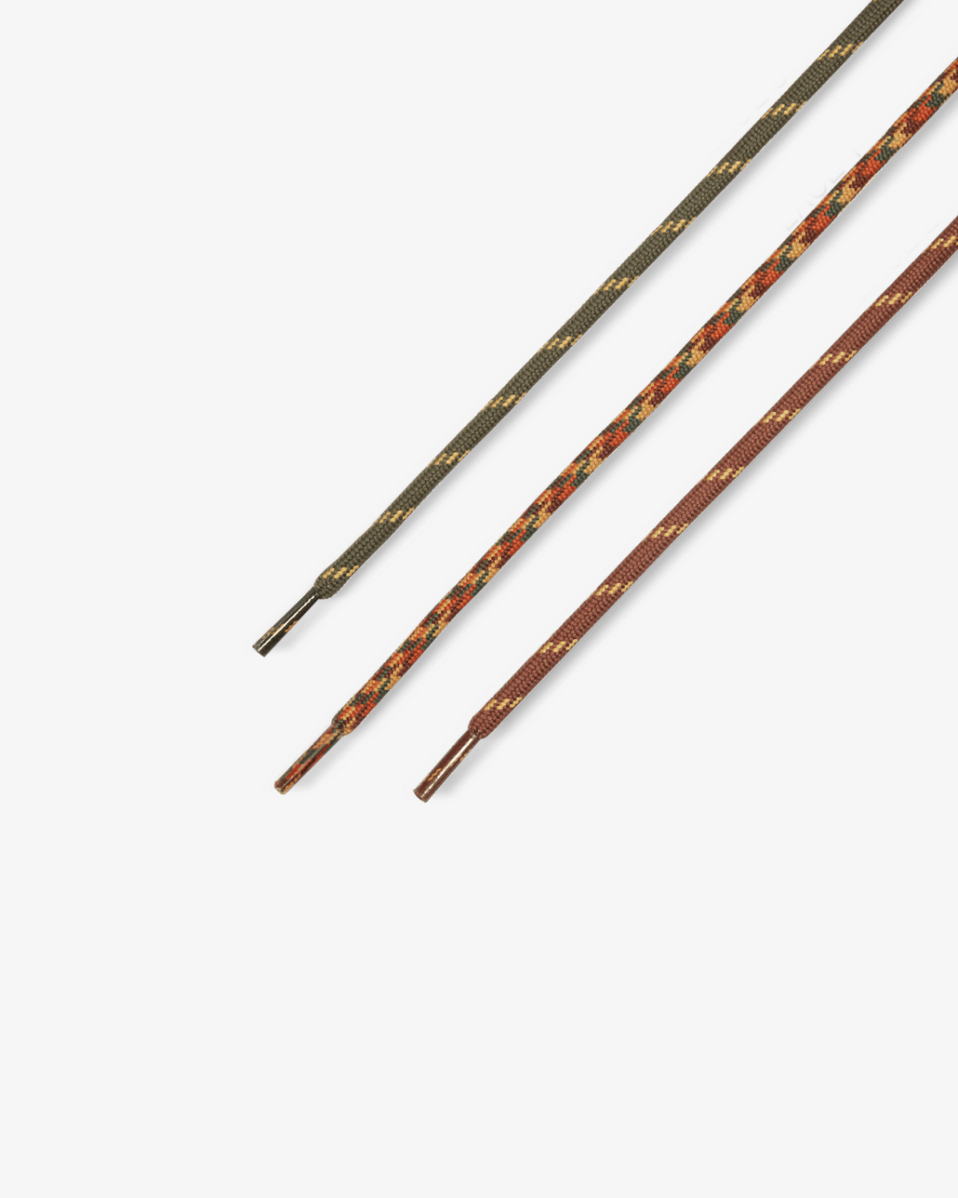 The upper is made from a mix of premium materials, including suede, canvas, and leather, creating a visually textured design. The base color is a deep forest green, accented by rich shades of brown, mustard yellow, and burgundy, giving the shoes an earthy, outdoorsy vibe. A standout detail is the hiking boot-style laces, which not only add a unique touch but also reinforce the outdoor theme.