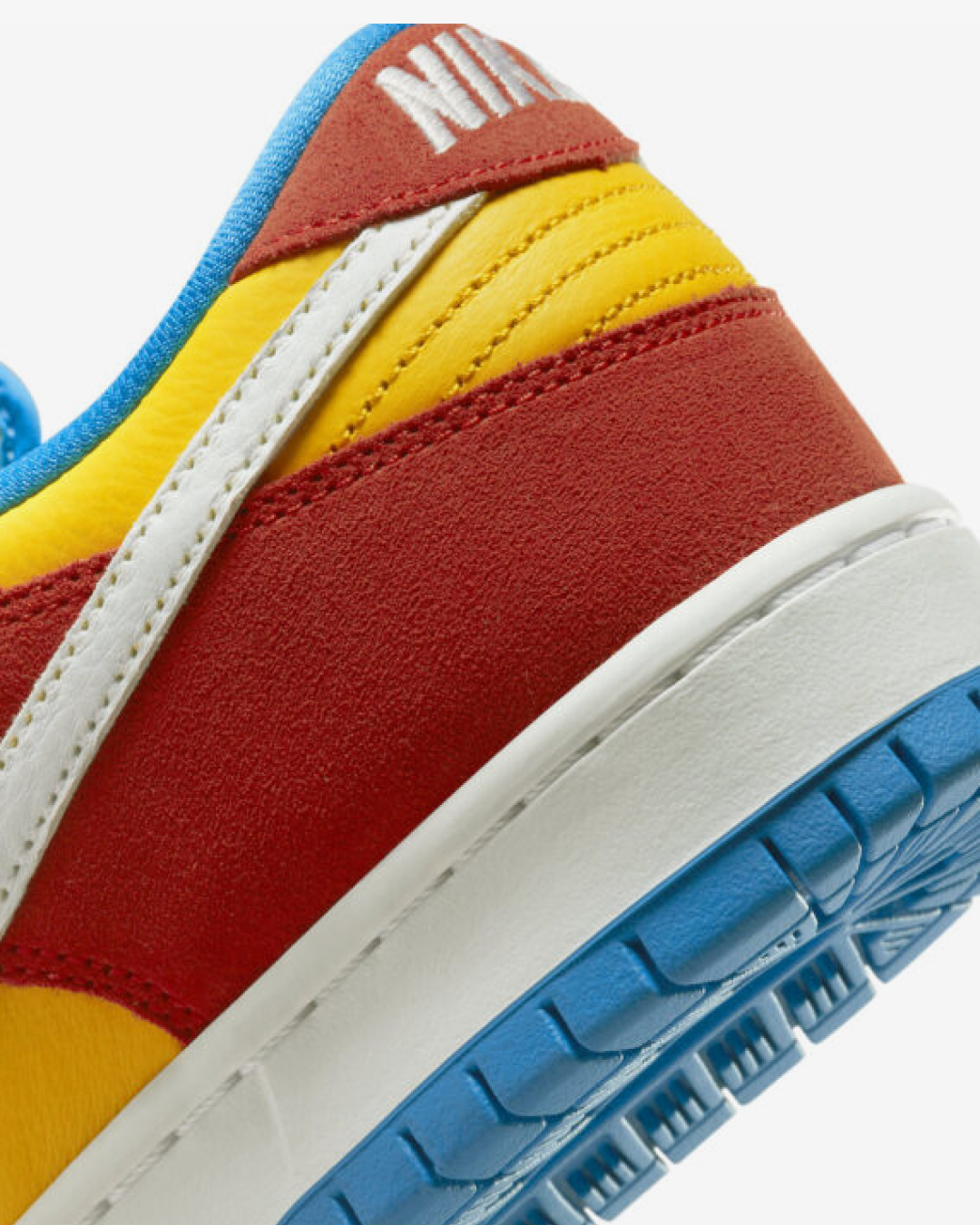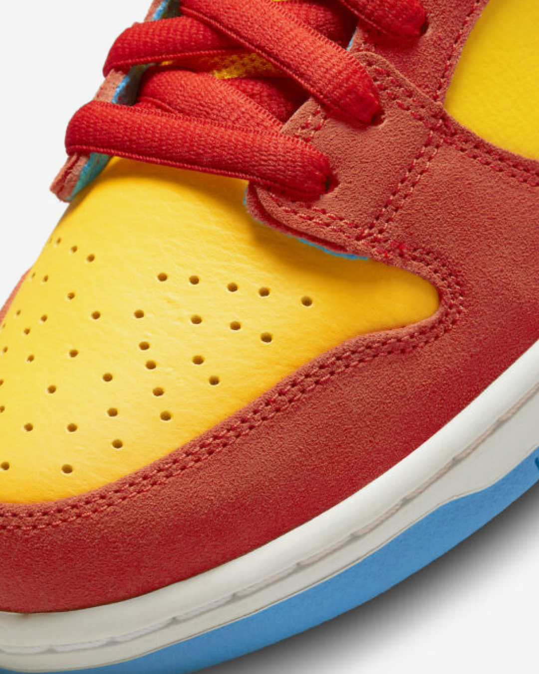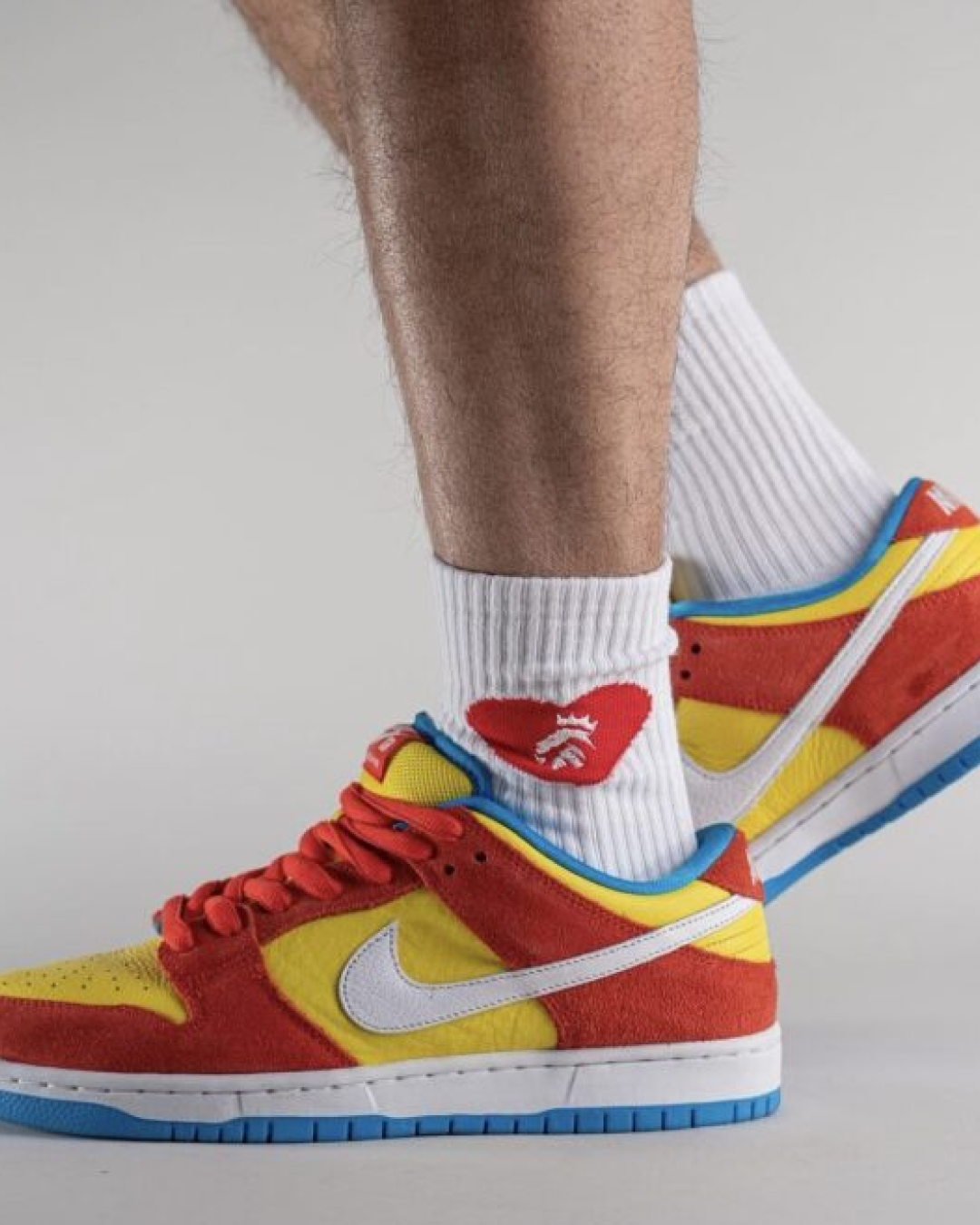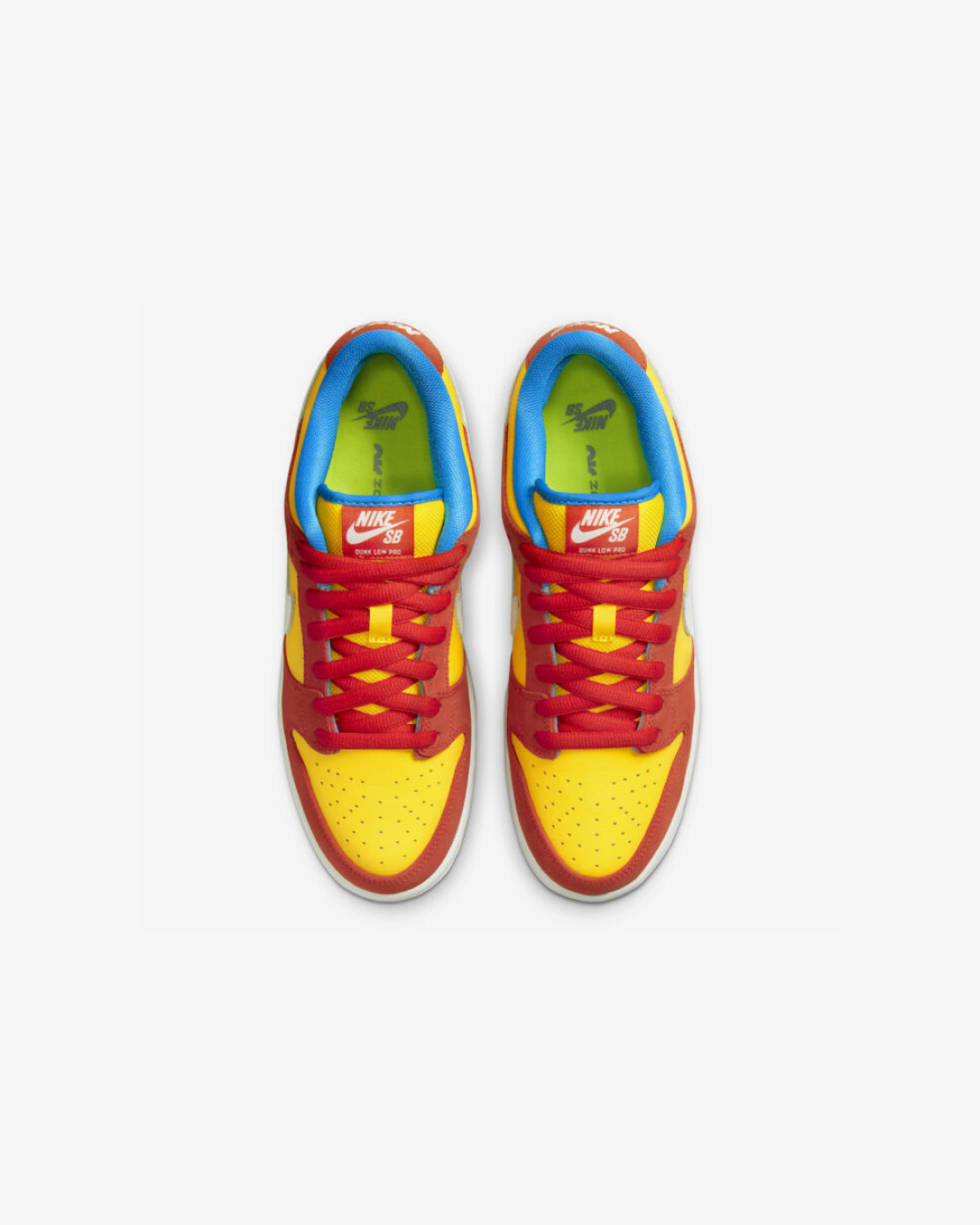 Add a playful pop culture icon to your sneaker collection with the Nike SB Dunk Low "Bart Simpson." Inspired by the beloved cartoon character, these sneakers feature a vibrant color palette reminiscent of Bart's classic outfit, with a bold combination of yellow, blue, and red.