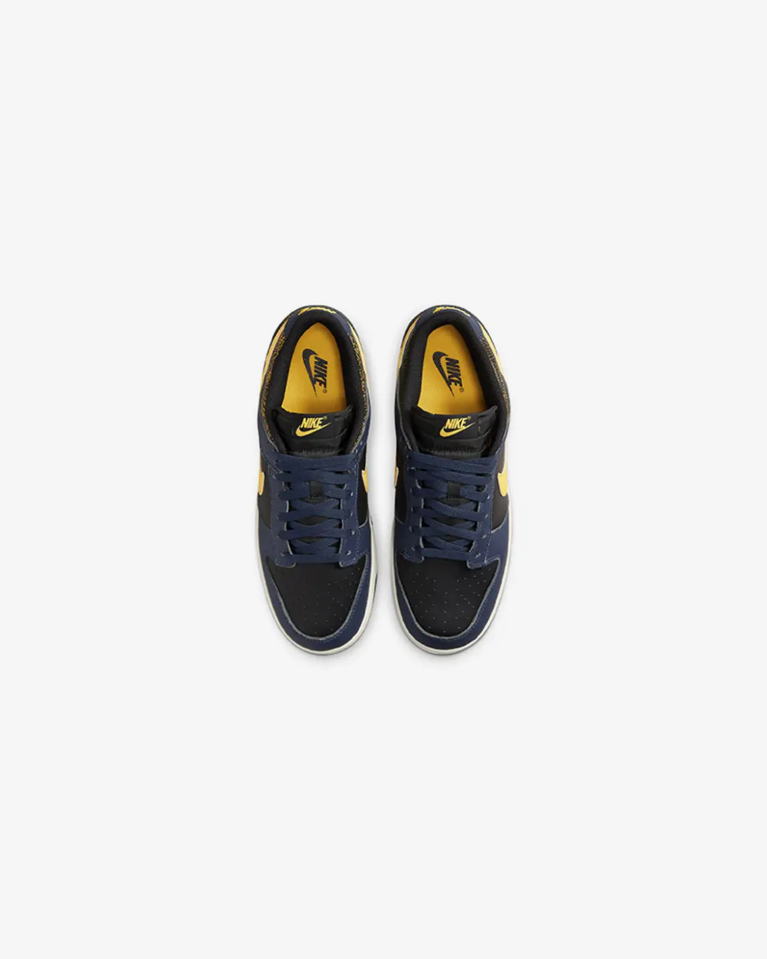 The Nike SB Dunk Low Pro "Vintage Michigan" Sneakers draw inspiration from the classic Michigan colorway, blending Varsity Maize and Midnight Navy hues for a retro yet timeless look. Featuring premium leather overlays and a durable design, these Dunks are built to handle both skate sessions and everyday wear. The padded tongue and Zoom Air cushioning in the sole provide ultimate comfort and support. Perfect for sneaker enthusiasts and collectors, these kicks deliver a nostalgic nod to college hoops with SB performance upgrades.