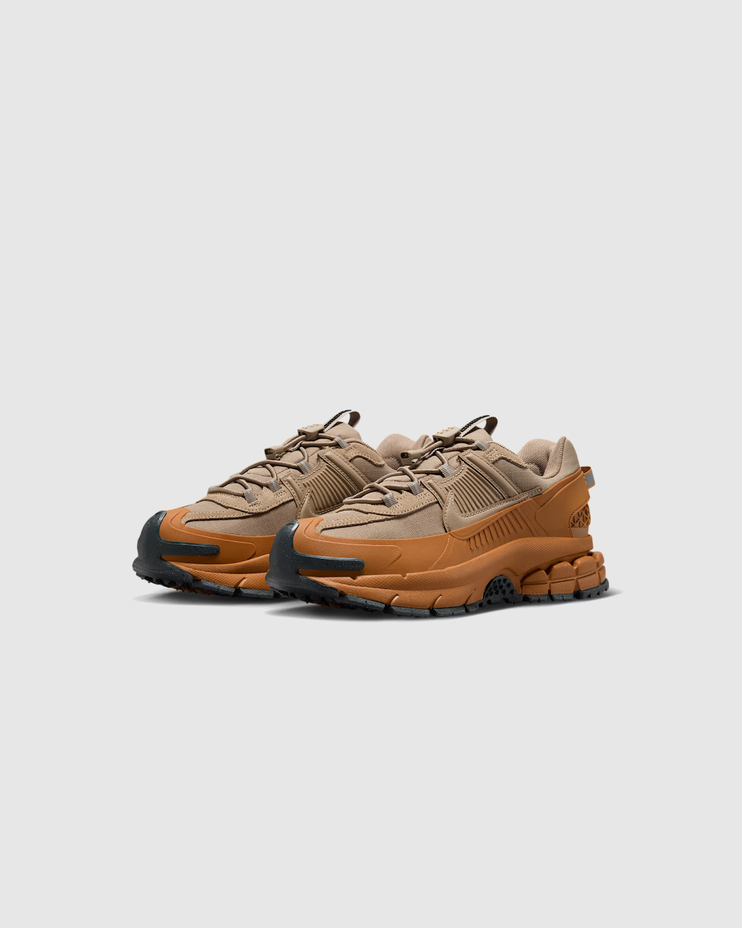 The Nike Zoom Vomero Roam “Flax/Anthracite/University Gold/Khaki” delivers rugged utility with an elevated lifestyle spin. This modern silhouette evolves the classic Vomero DNA with a tech-runner aesthetic, featuring a layered upper built from durable ripstop mesh, fused overlays, and supportive webbing. The earthy Flax and Khaki tones are accented by hits of Anthracite and University Gold, adding visual contrast without overpowering the look. Underfoot, Zoom Air cushioning and Cushlon foam deliver next-level comfort and responsiveness. Finished with a toggle-lace system and reflective detailing, the Roam is built for the city, trail, or wherever your rotation takes you.