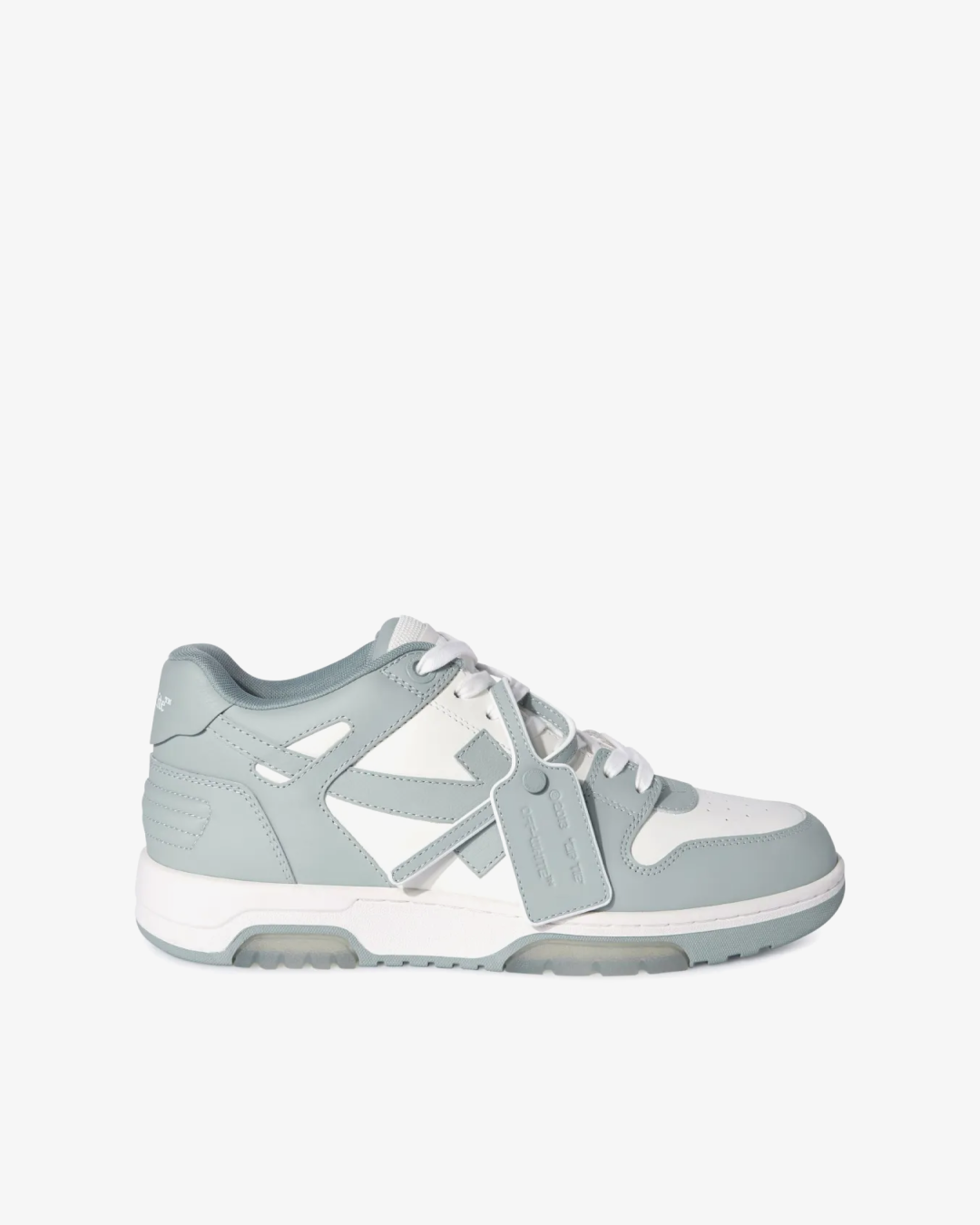 The Off-White Out of Office “Grey White” sneakers blend streetwear attitude with luxury craftsmanship. Designed with smooth leather overlays in crisp white contrasted by muted grey panels, this pair carries Virgil Abloh’s signature design language—minimal yet instantly recognizable. The low-top silhouette makes it versatile for everyday wear while maintaining an elevated edge.