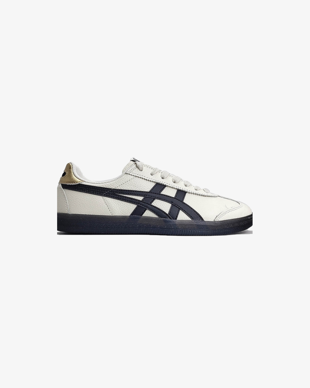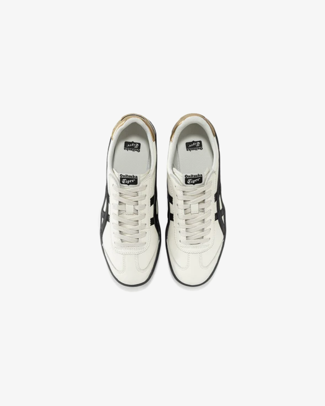 The Onitsuka Tiger Tokuten in the ‘White Black Gold’ colorway blend timeless style with modern flair. Crafted from sturdy leather, these sneakers feature a clean design in white, black, and cream white. The iconic Tiger stripes adorn the sides, while the reliable gum rubber sole ensures optimal grip. Whether you’re hitting the streets or adding a sporty touch to your outfit, these Tokuten shoes deliver comfort and versatility. A fusion of Japanese craftsmanship and contemporary fashion, they epitomize the Onitsuka Tiger brand spirit.
