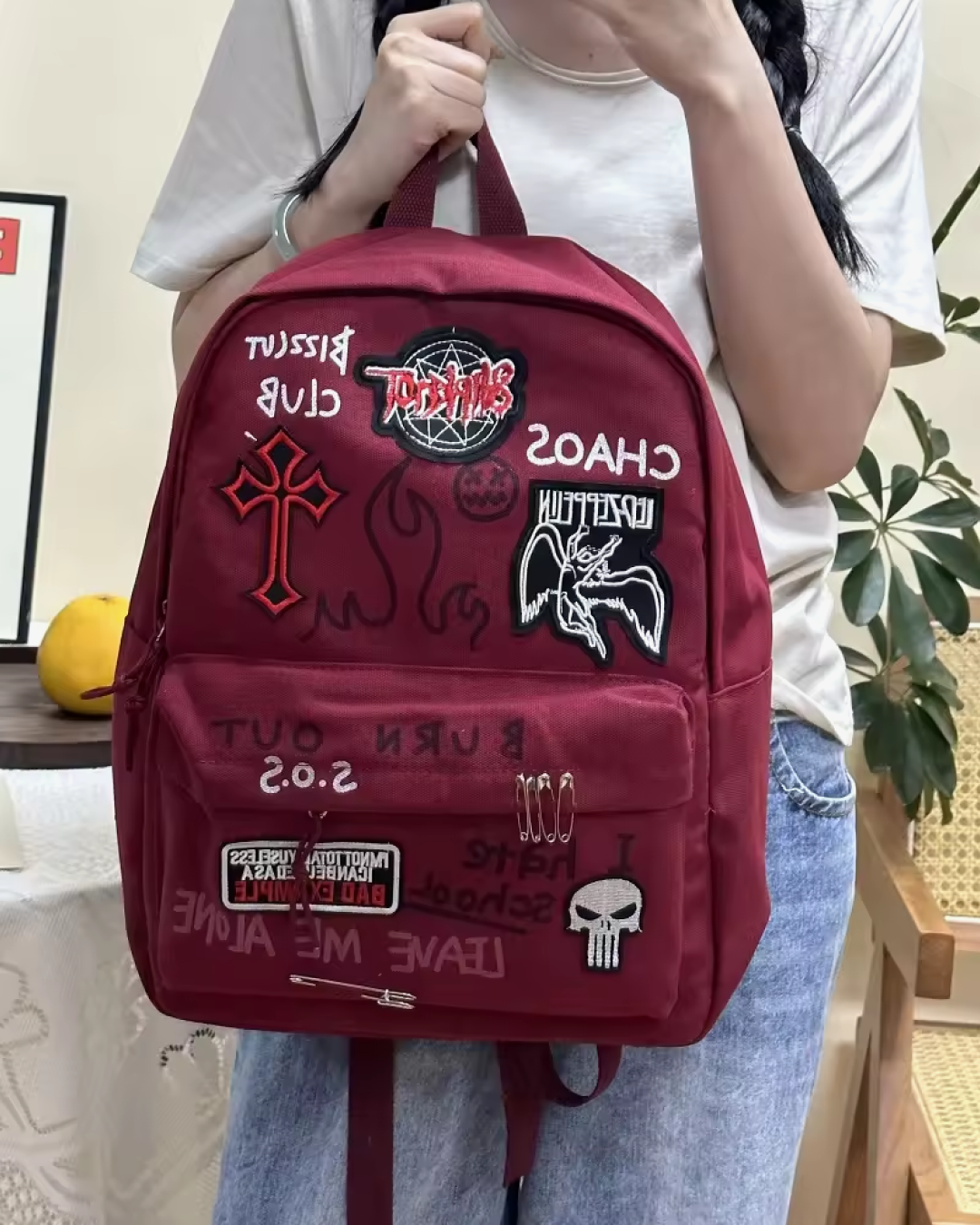 Crafted from durable materials, this backpack is built to withstand daily use while maintaining its unique aesthetic. The spacious main compartment offers ample room for books, gadgets, and essentials, while multiple zippered pockets provide secure storage for smaller items. The adjustable padded shoulder straps ensure comfort, making it ideal for all-day wear.